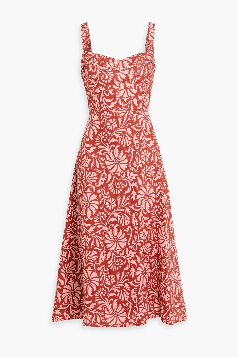 Dress floral-print linen quilted trims adjustable straps concealed hook and zip fastening at back fully lined mid-weight, non-stretchy fabric dry clean imported 100% Linen Product Code 46376663163079347