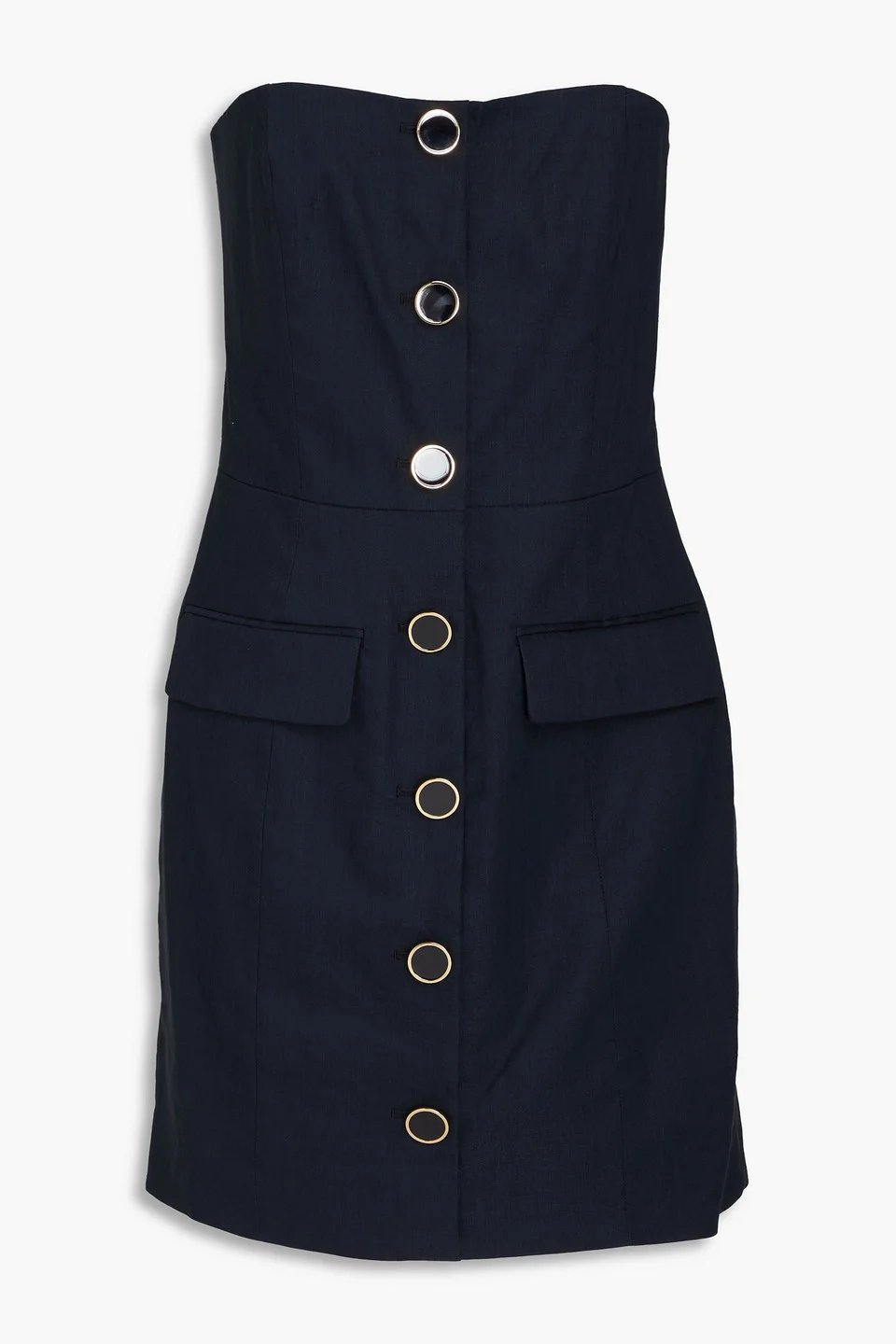 Strapless dress stretch-linen button-embellished two front flap pockets concealed hook and zip fastening at back fully lined internal gumming stretchy fabric mid-weight fabric machine wash or dry clean imported Looking for a really great addition to your wardrobe? The ‘Aldrich’ dress by Veronica Beard is a stunning strapless mini made from soft linen, featuring a button-embellished front. Perfect for a stylish brunch or an evening out, just add your favorite heels and a sleek clutch to complete the look. 63% Linen 37% Elastomultiester Product Code 1647597337556871