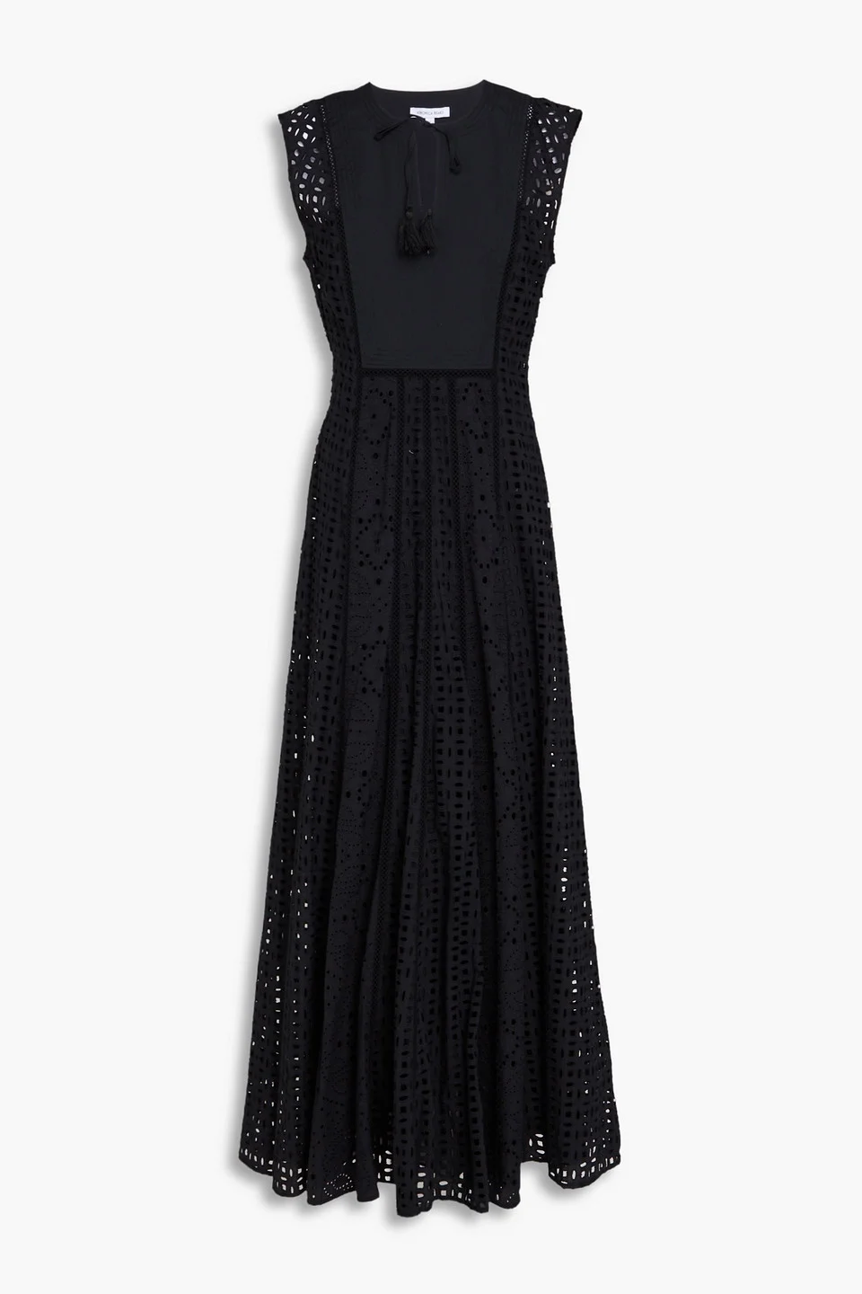 Dress broderie anglaise cotton concealed zip fastening along side tie-fastening keyhole at front detachable slip to line mid-weight, non-stretchy fabric dry clean imported 100% Cotton Product Code 46376663163054373
