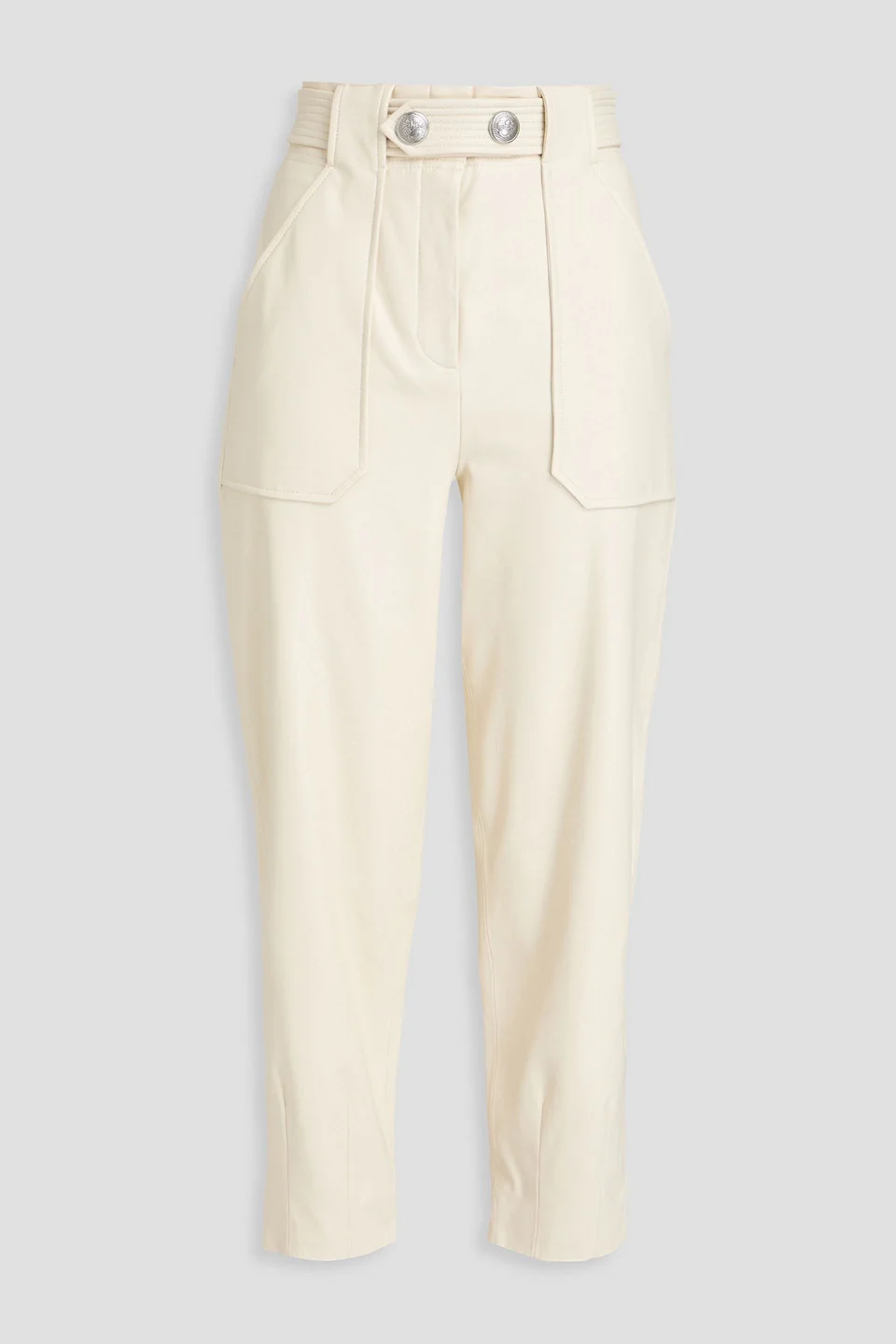 Tapered pants synthetic material cropped detachable belt belt loops high-rise cut mid-weight, slightly stretchy fabric hand wash imported Step out in style with the ‘Atala’ pants by Veronica Beard. They feature a flattering cropped tapered silhouette and a chic detachable belt. Perfect for chic off-duty days, wear with a tonal top and flats. 100% Polyurethane Product Code 1647597357513141