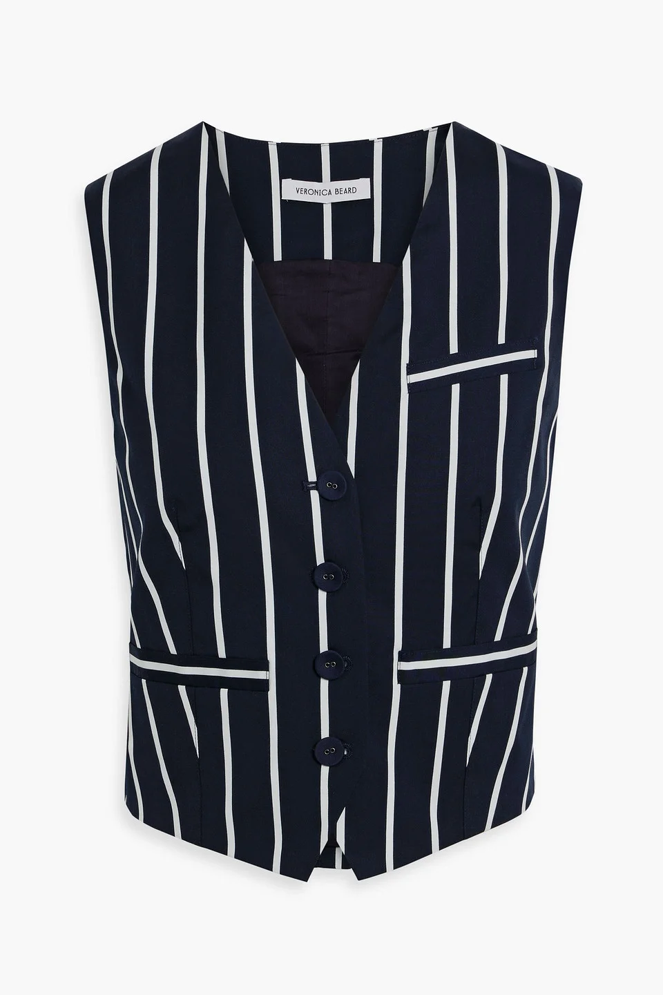 Vest striped cotton-blend half-belt breast pocket front welt pockets button fastenings through front fully lined mid-weight, slightly stretchy fabric dry clean imported 97% Cotton 3% Elastane Product Code 46376663162911611