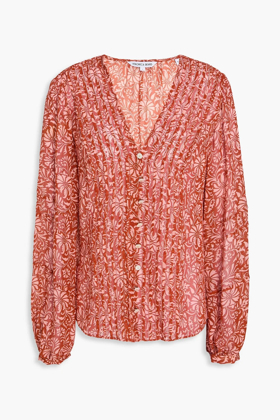 Blouse floral-print silk-georgette lattice trims pintucked buttoned cuffs side slits button fastenings through front lightweight, non-stretchy fabric dry clean imported 100% Silk Product Code 46376663163052369