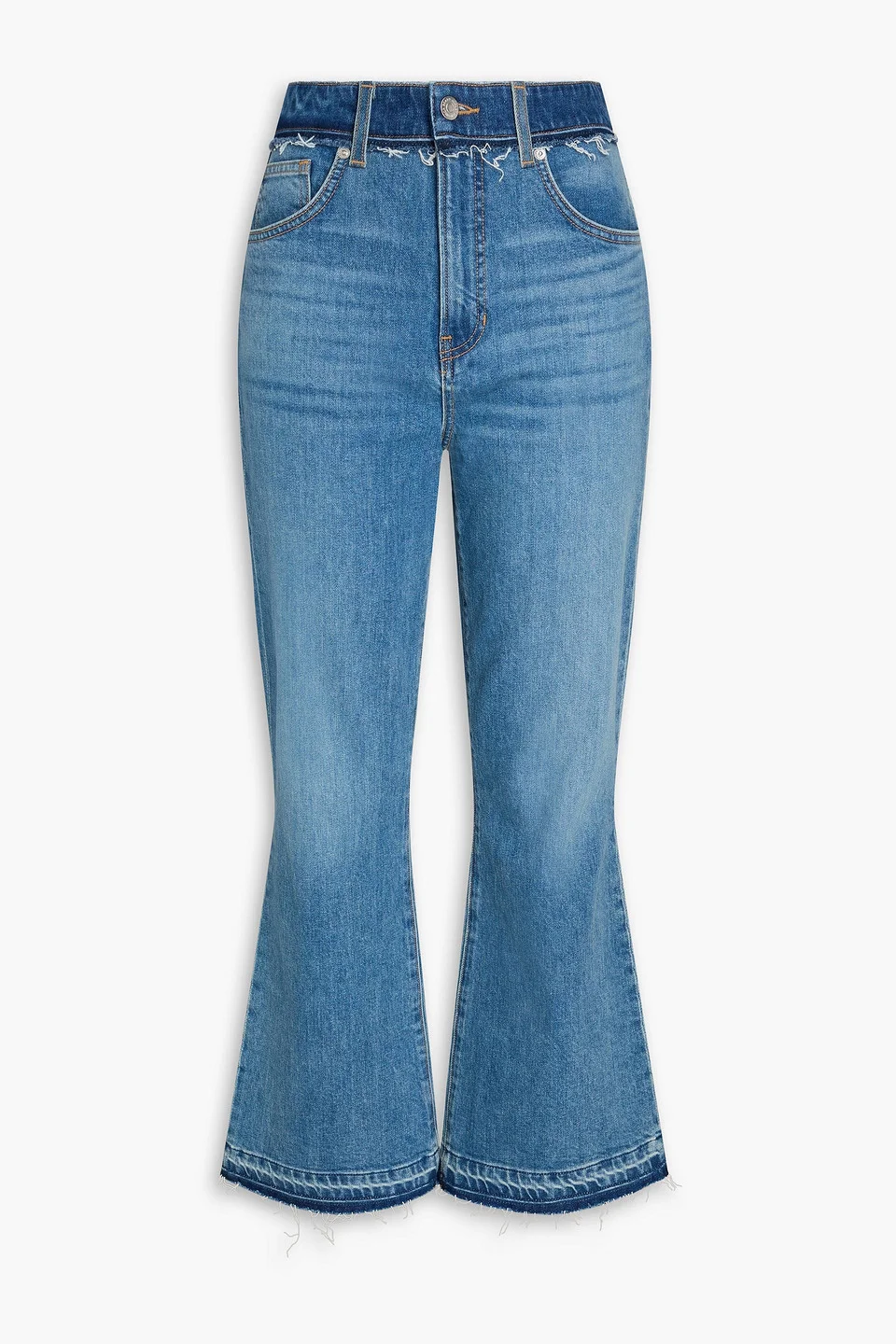 Flared jeans denim frayed trims high-rise cut five pockets button and concealed zip fastening at front mid-weight, slightly stretchy fabric machine wash or dry clean Veronica Beard's ‘Carson’ flared jeans are an absolute must-have. With their high-rise fit and frayed cuffs, they offer a unique twist on classic denim. Wear them with a sleek bodysuit for a night out that’s sure to impress. 98% Cotton 2% Polyurethane Product Code 46376663162841130