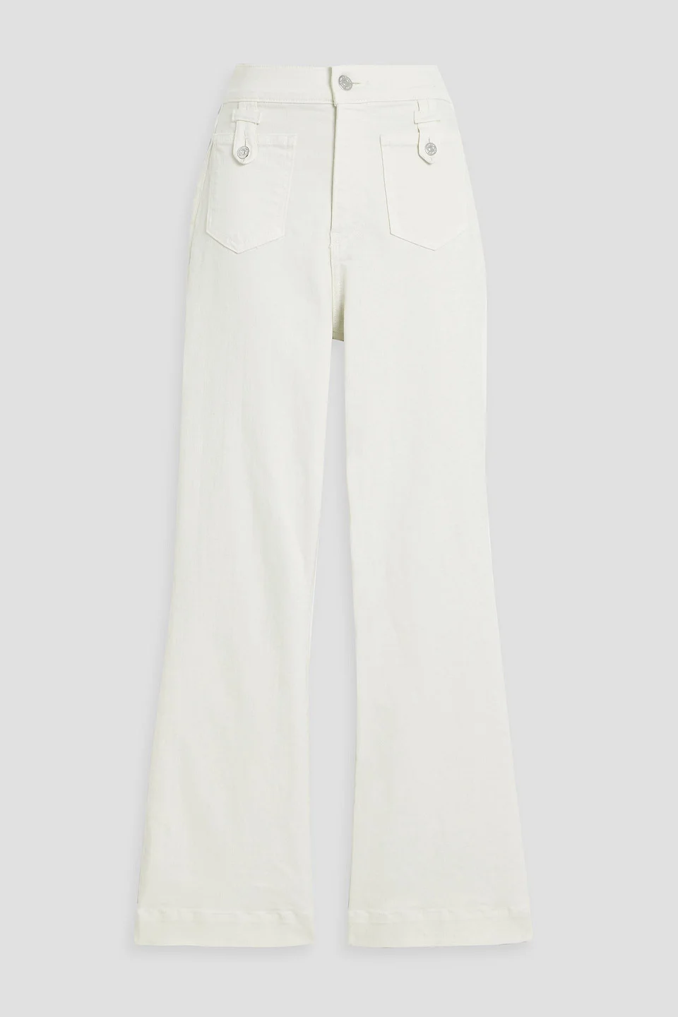 Kick-flare jeans denim belt loops high-rise cut two back patch pockets two front patch pockets button and concealed zip fastening at front mid-weight, non-stretchy fabric machine wash or dry clean 91% Cotton 7% Polyester 2% Polyurethane Product Code 46376663162900083
