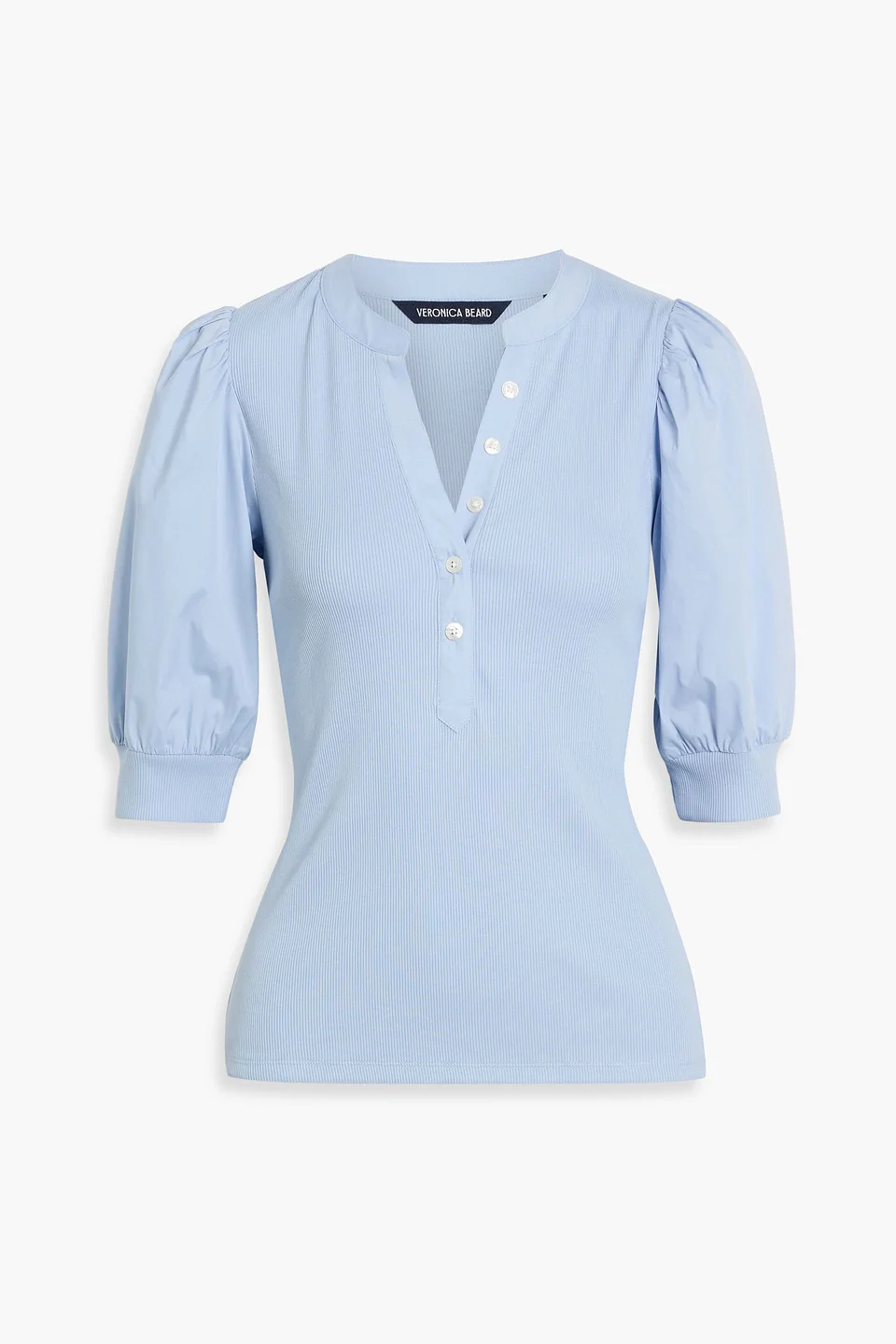 Top pima cotton-blend cotton-blend poplin ribbed paneled puffed sleeves button fastenings along front mid-weight, slightly stretchy fabric machine wash imported 96% Pima Cotton 4% Elastane Product Code 46376663163065585