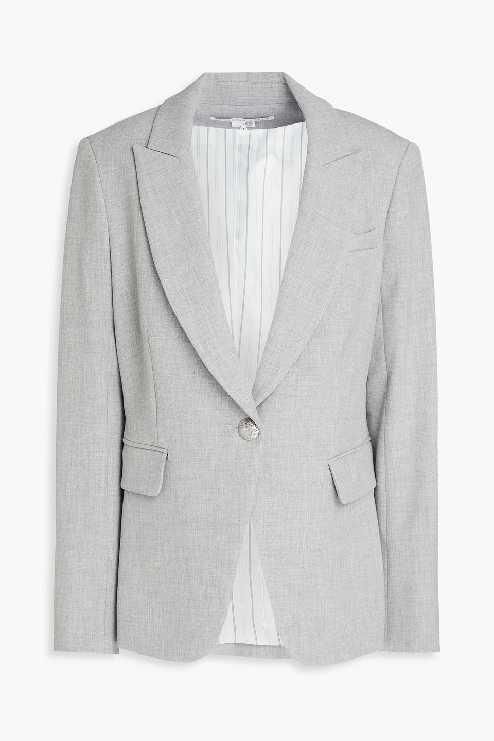 Blazer crepe shoulder pads buttoned cuffs breast pocket two front flap pockets button fastening at front fully lined back vent mid-weight, non-stretchy fabric dry clean Veronica Beard dickey blazer is one of the label's best-selling designs. This version has a classic single-breasted front make it a versatile choice for any occasion. Style it with tailored trousers for a chic office look or dress it down with jeans for a casual outing. 63% Polyester 27% Viscose 7% Cotton 3% Elastane Product Code 1647597345443626