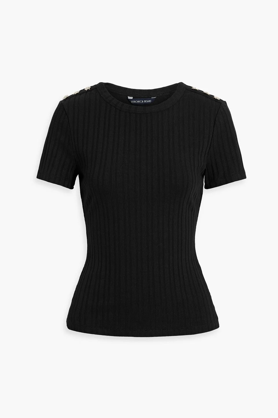 Top cotton-blend ribbed crystals slips on mid-weight knit machine wash or dry clean imported 91% Cotton 9% Elastane Product Code 46376663162970861