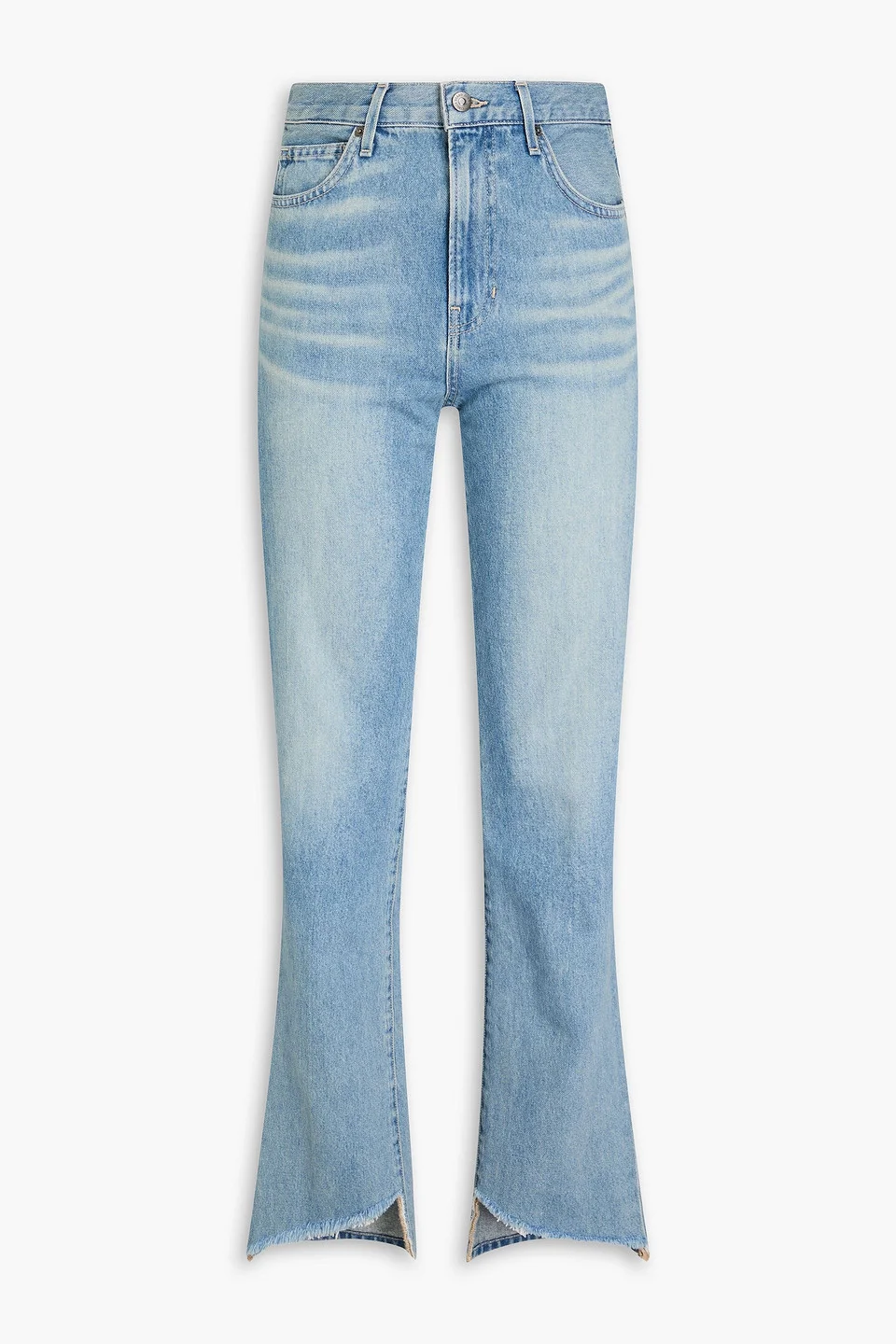Straight-leg jeans faded denim belt loops high-rise cut multipockets button and concealed zip fastening at front frayed cuffs mid-weight, non-stretchy fabric machine wash or dry clean Invest in these Veronica Beard's 'Dylan' jeans and you'll never miss a beat. The faded denim and frayed cuffs enhance your casual wardrobe. Wear with a simple top and statement accessories for a chic, effortless look. 100% Cotton Product Code 1647597345261509