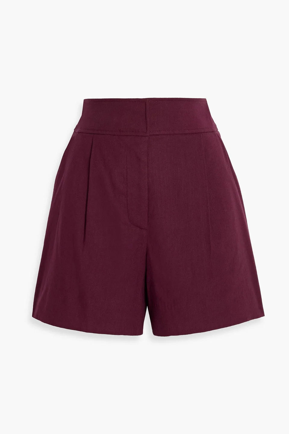 Shorts linen-blend pleated high-rise cut front slant pockets back welt pockets concealed hook, button and zip fastening at front mid-weight, slightly stretchy fabric dry clean 55% Linen 42% Viscose 3% Elastane Product Code 46376663162969823