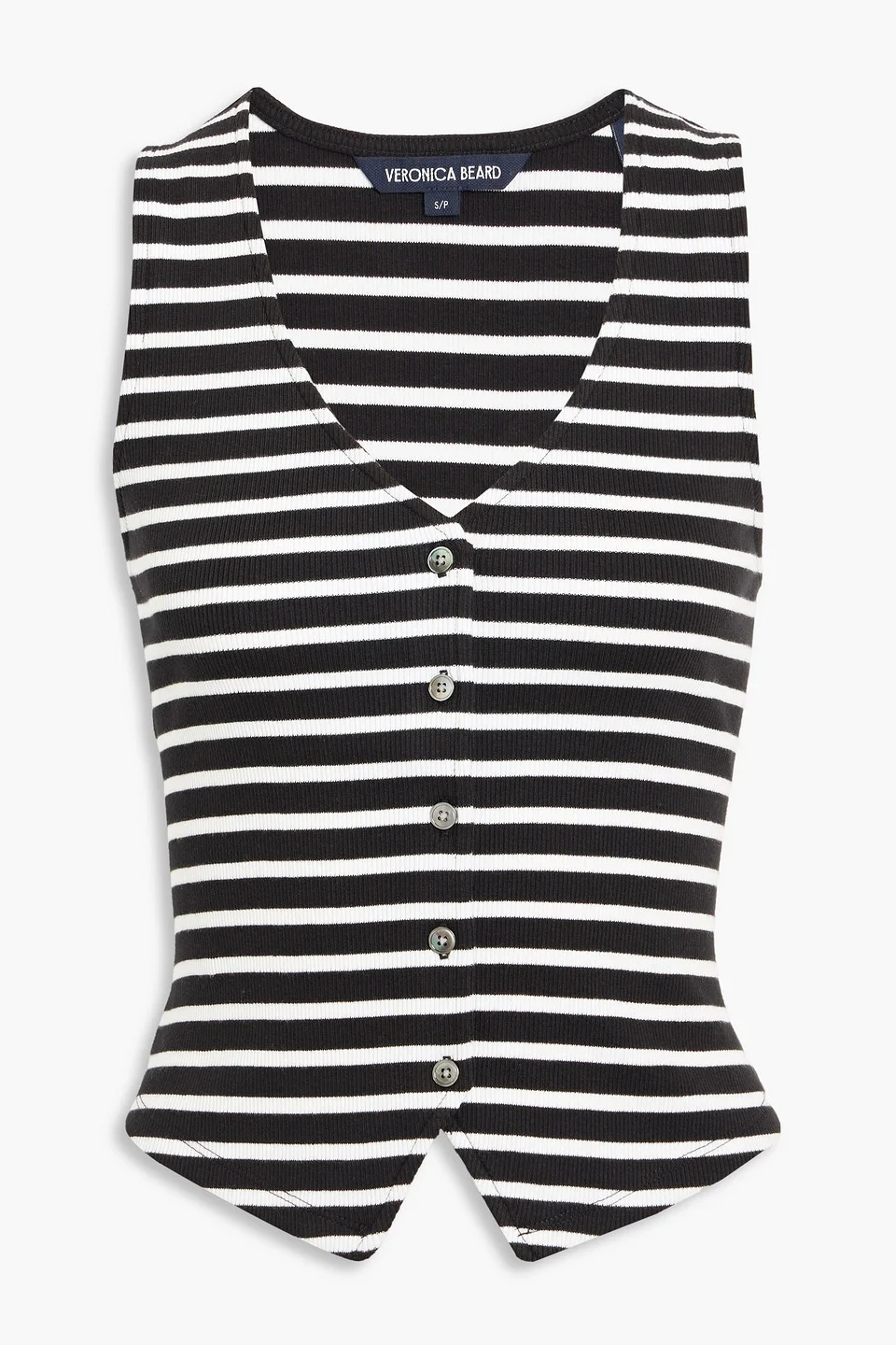 Top striped pima cotton-blend ribbed button fastenings through front mid-weight, slightly stretchy fabric machine wash imported 96% Pima Cotton 4% Elastane Product Code 46376663163042985