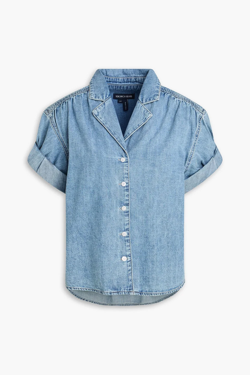 Shirt denim folded cuffs curved hem button fastenings through front mid-weight, non-stretchy fabric machine wash or dry clean matching shorts also available imported 100% Cotton Product Code 46376663163055018