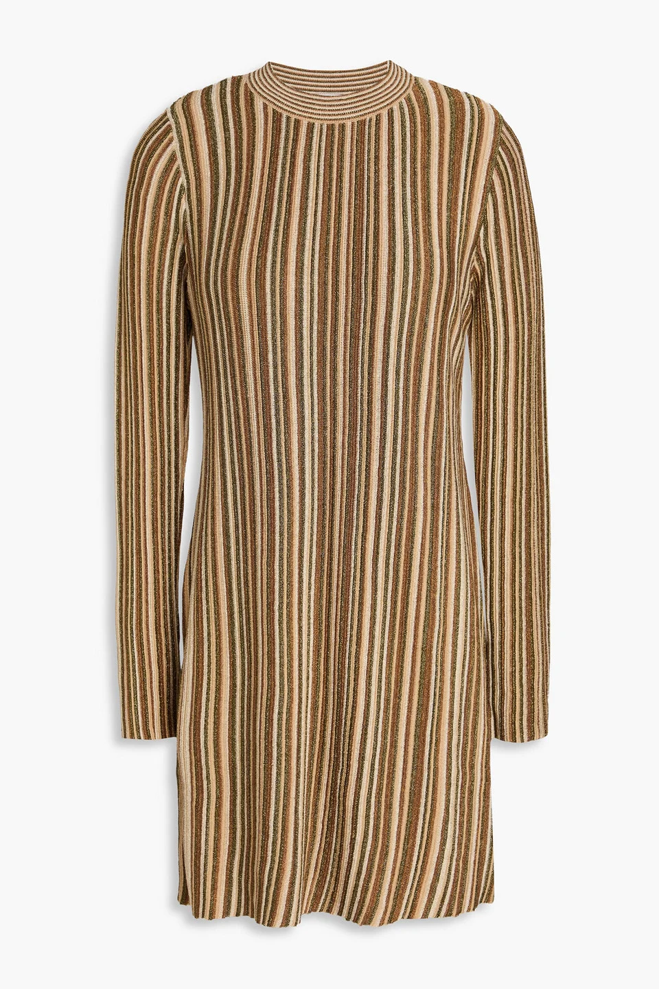 Dress metallic striped ribbed-knit slips on detachable slip to line lightweight knit dry clean imported 83% Viscose 12% Metallic fiber 5% Polyester Product Code 46376663163049092