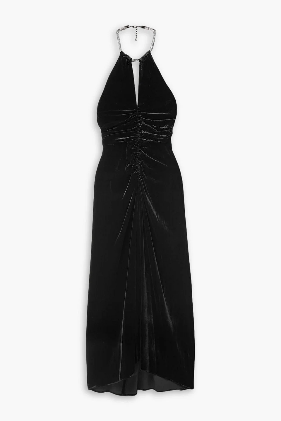 Josette crystal-embellished ruched velvet halterneck midi dress