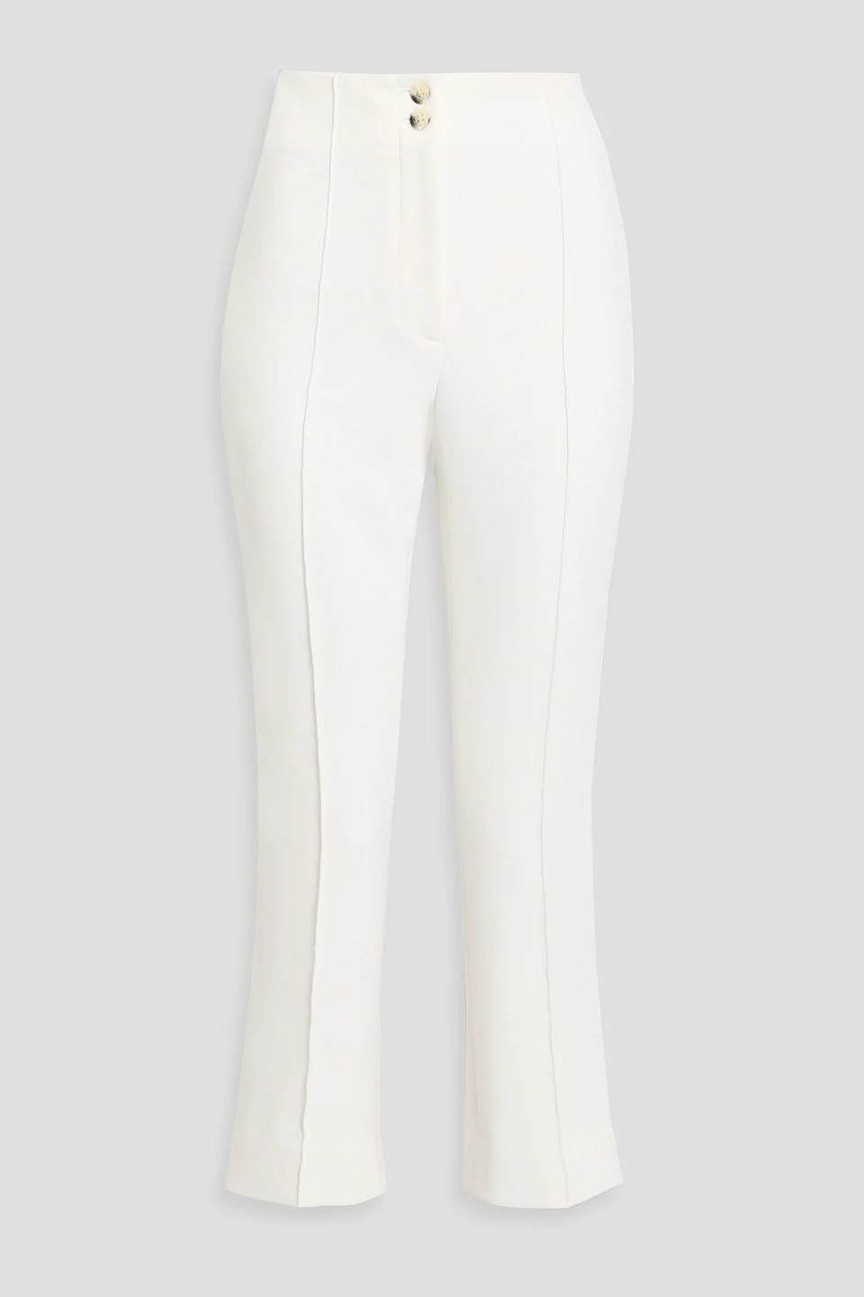 Slim-leg pants woven stitched front creases cropped front slant pockets back welt pockets high-rise cut button and concealed zip fastening at front mid-weight, slightly stretchy fabric dry clean imported 69% Polyester 28% Viscose 3% Elastane Product Code 46376663163045426