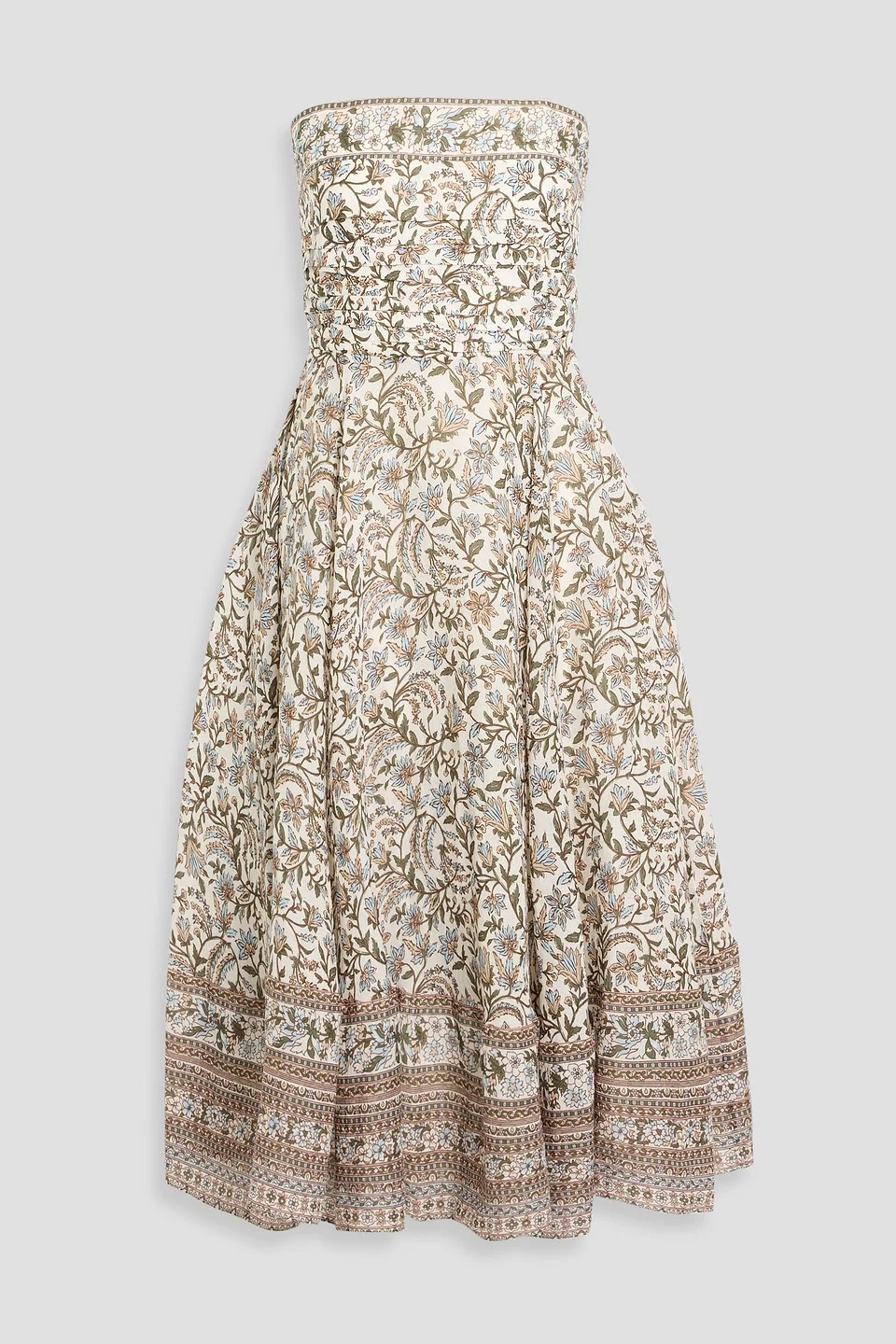 Lana strapless floral-print ramie midi dress