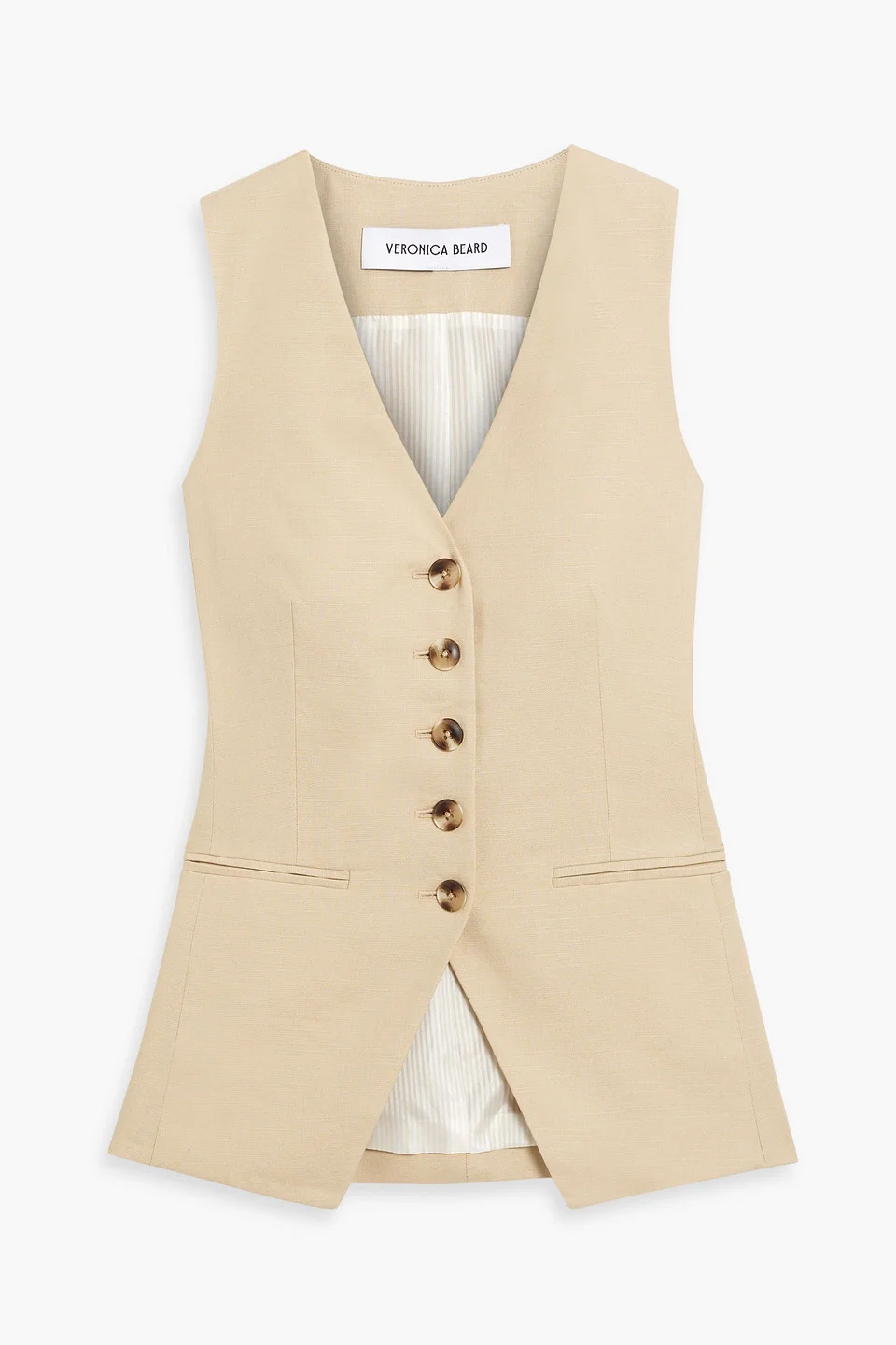 Vest linen-blend half-belt front welt pockets button fastenings through front fully lined mid-weight, slightly stretchy fabric dry clean imported 55% Linen 43% Viscose 2% Elastane Product Code 46376663162911512