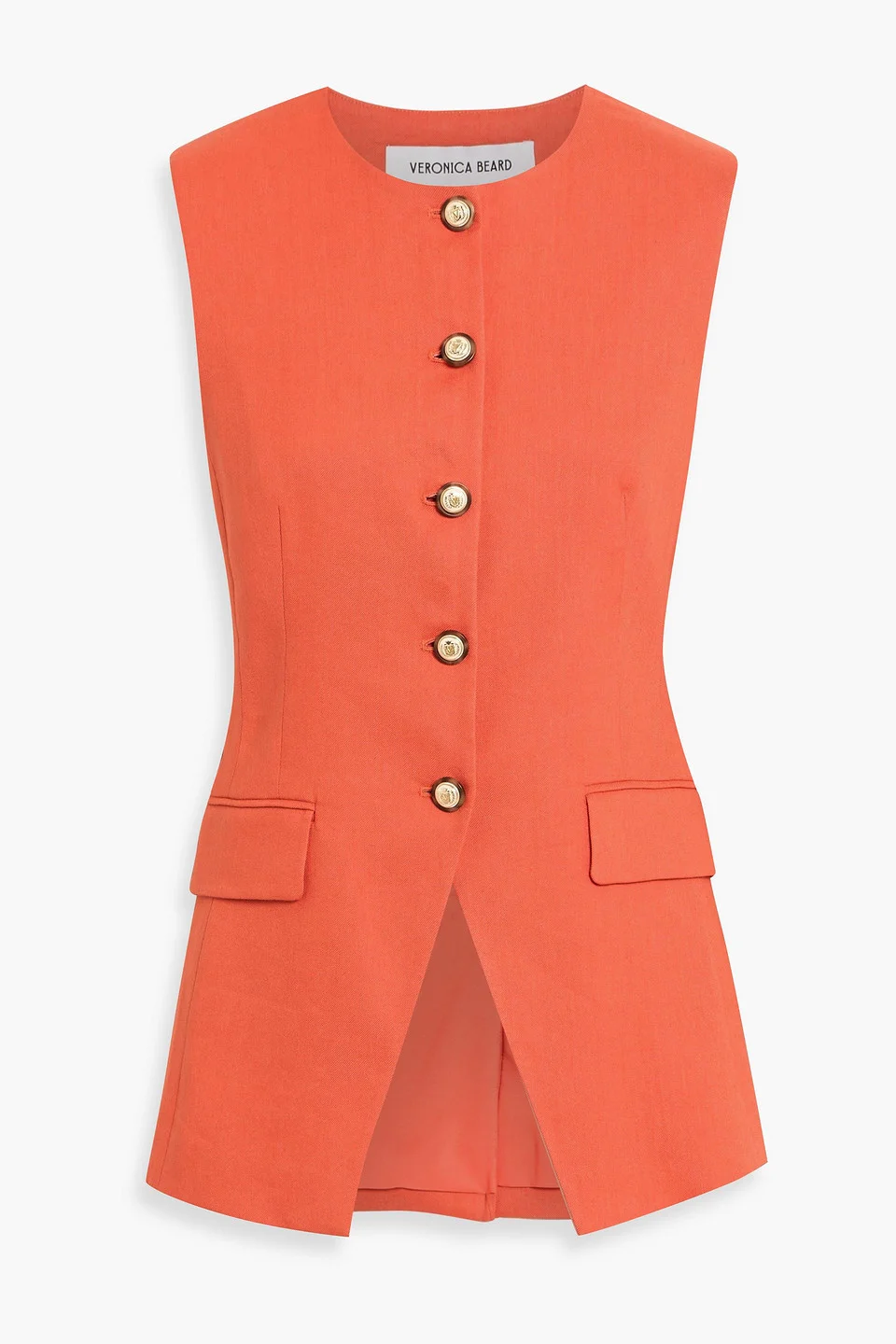 Vest linen-blend twill front flap pockets button fastenings through front fully lined back vent mid-weight, slightly stretchy fabric dry clean imported 55% Linen 44% Viscose 1% Elastane Product Code 46376663163065145