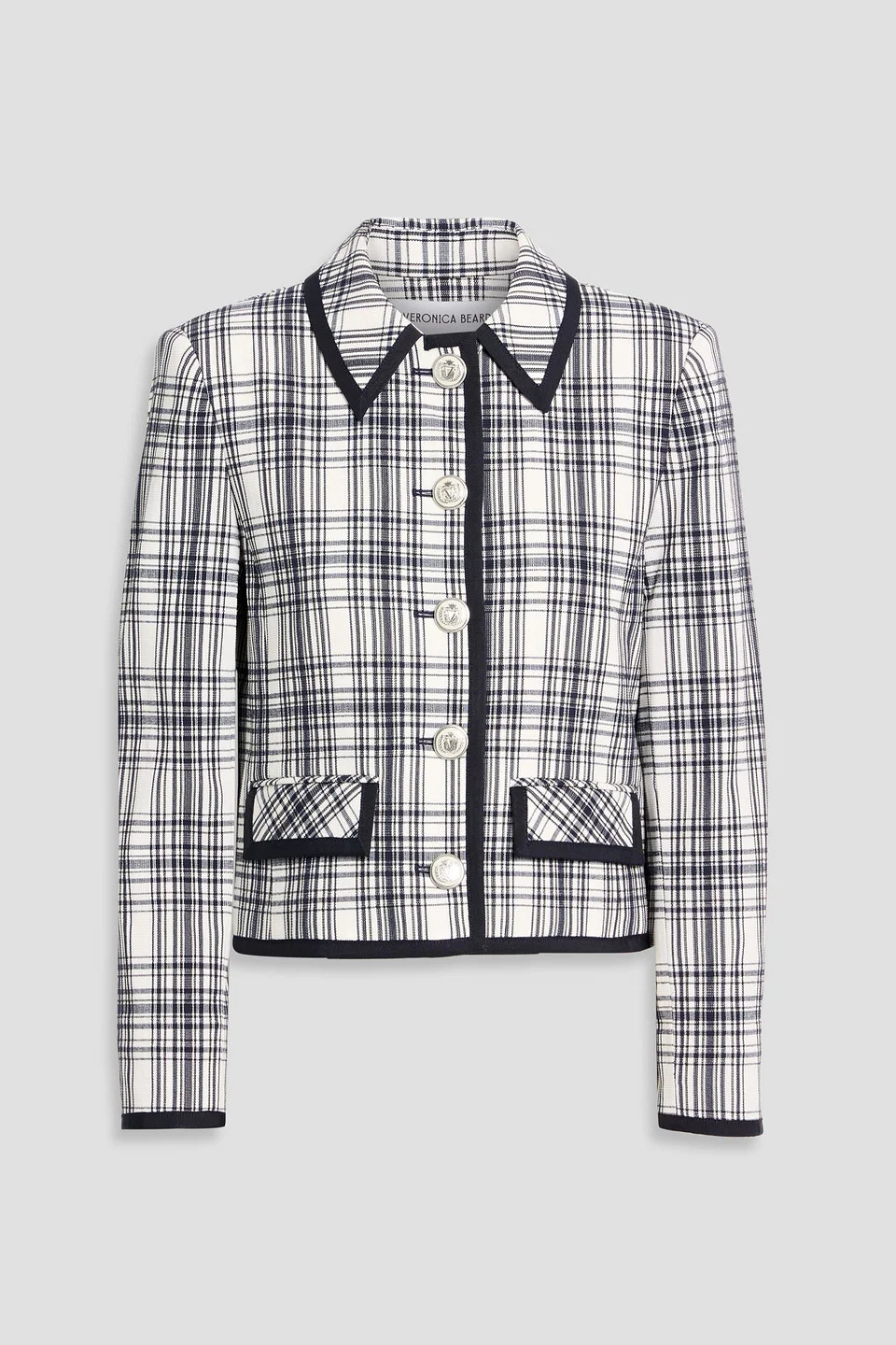 Jacket checked cotton-blend tweed shoulder pads grosgrain trims buttoned cuffs front flap pockets button fastenings through front fully lined mid-weight, slightly stretchy fabric dry clean imported 61% Cotton 37% Polyester 2% Elastane Product Code 46376663163038562