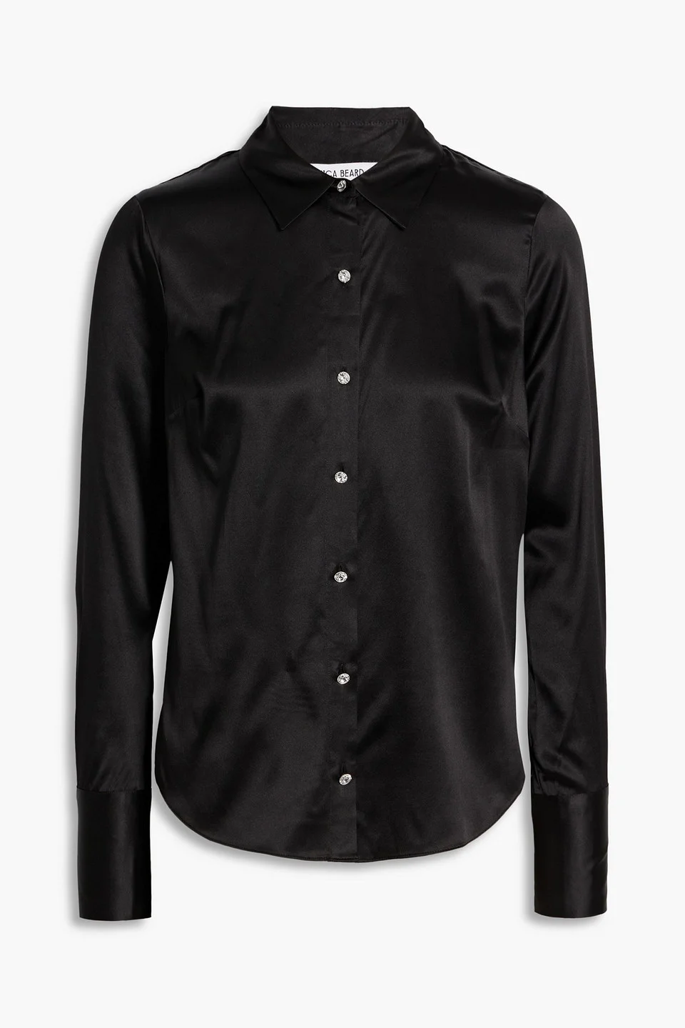 Shirt silk-blend satin buttoned cuffs curved hem button fastenings through front mid-weight, slightly stretchy fabric dry clean imported 53% Silk 35% Viscose 12% Elastane Product Code 46376663162972993