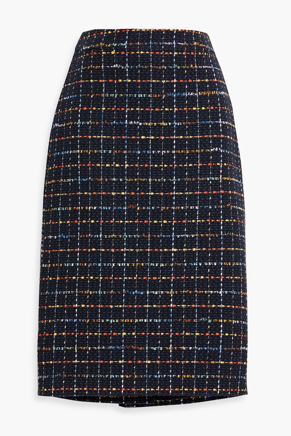 Pencil skirt metallic checked tweed cotton-blend back slit fully lined concealed hook and zip fastening at back mid-weight, non-stretchy fabric dry clean imported 60% Cotton 40% Polyester Product Code 46376663162848634