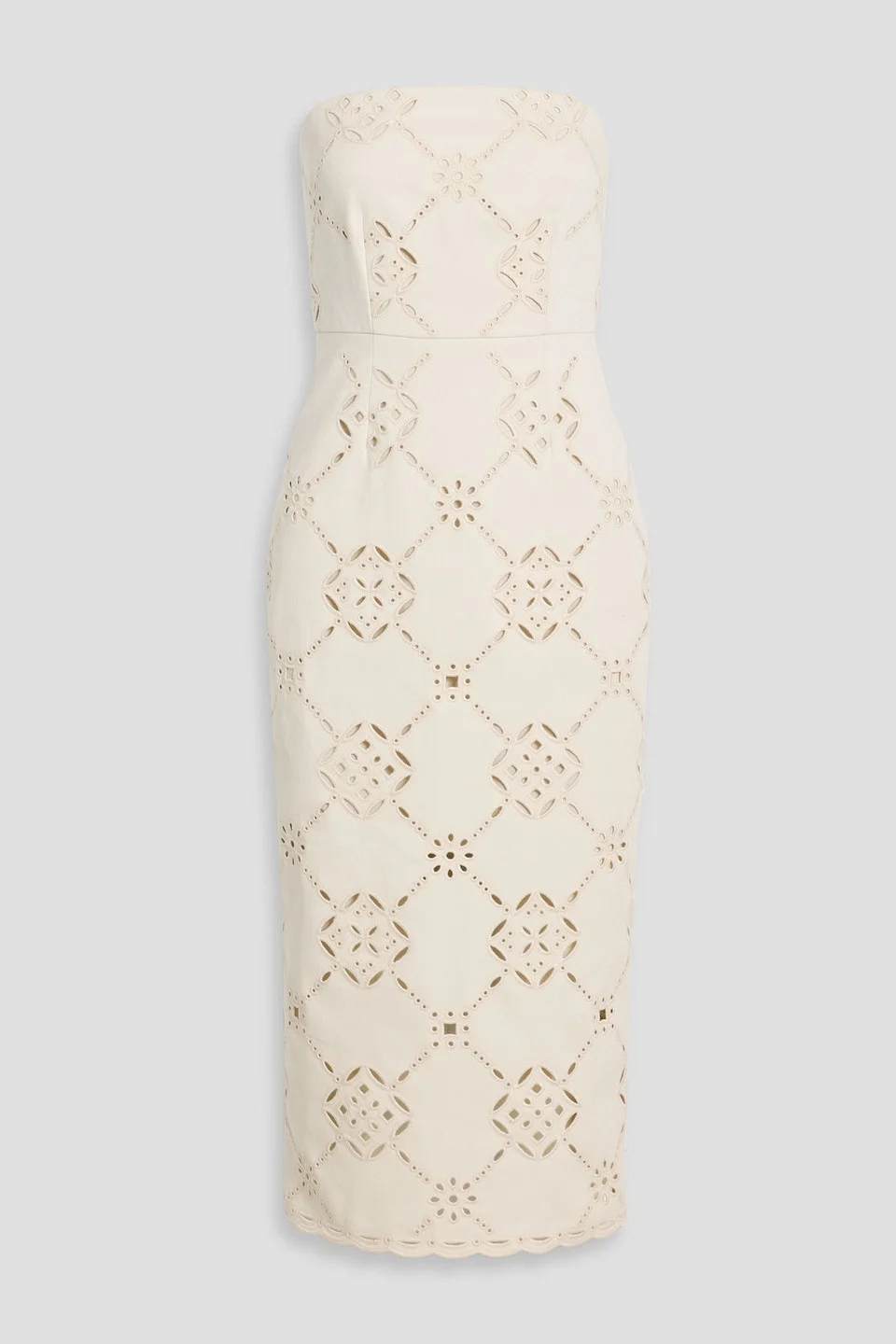 Strapless dress broderie anglaise cotton-blend back slit concealed hook and zip fastening at back mid-weight, non-stretchy fabric dry clean imported 98% Cotton 2% Elastane Product Code 46376663163065608