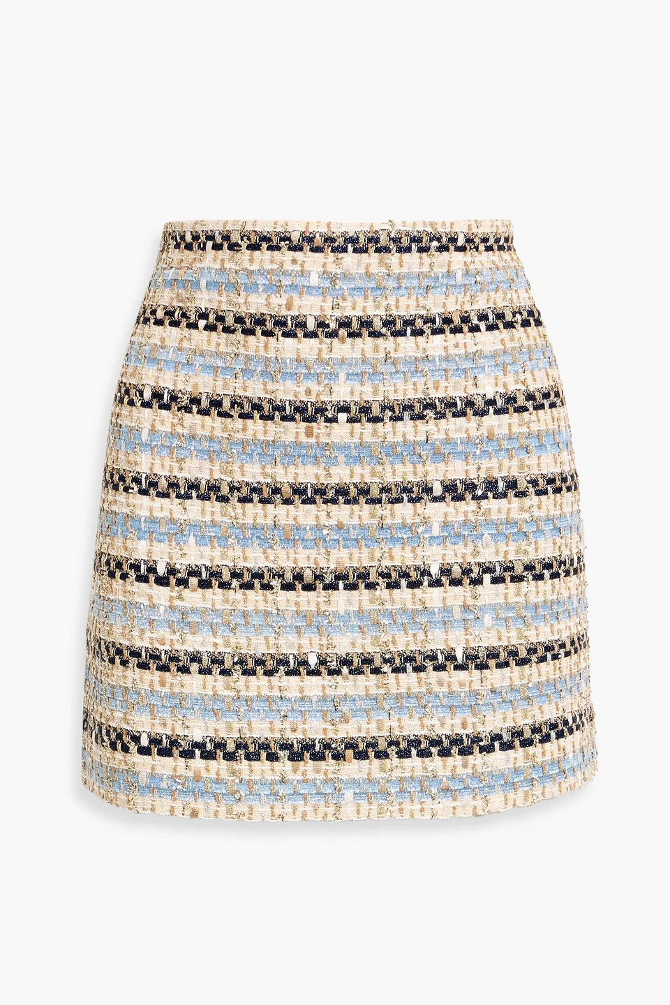 Skirt metallic striped tweed fully lined concealed hook and zip fastening at back mid-weight, non-stretchy fabric dry clean imported 42% Cotton 15% Acrylic 15% Polyamide 15% Viscose 13% Textile fibers Product Code 46376663163035490