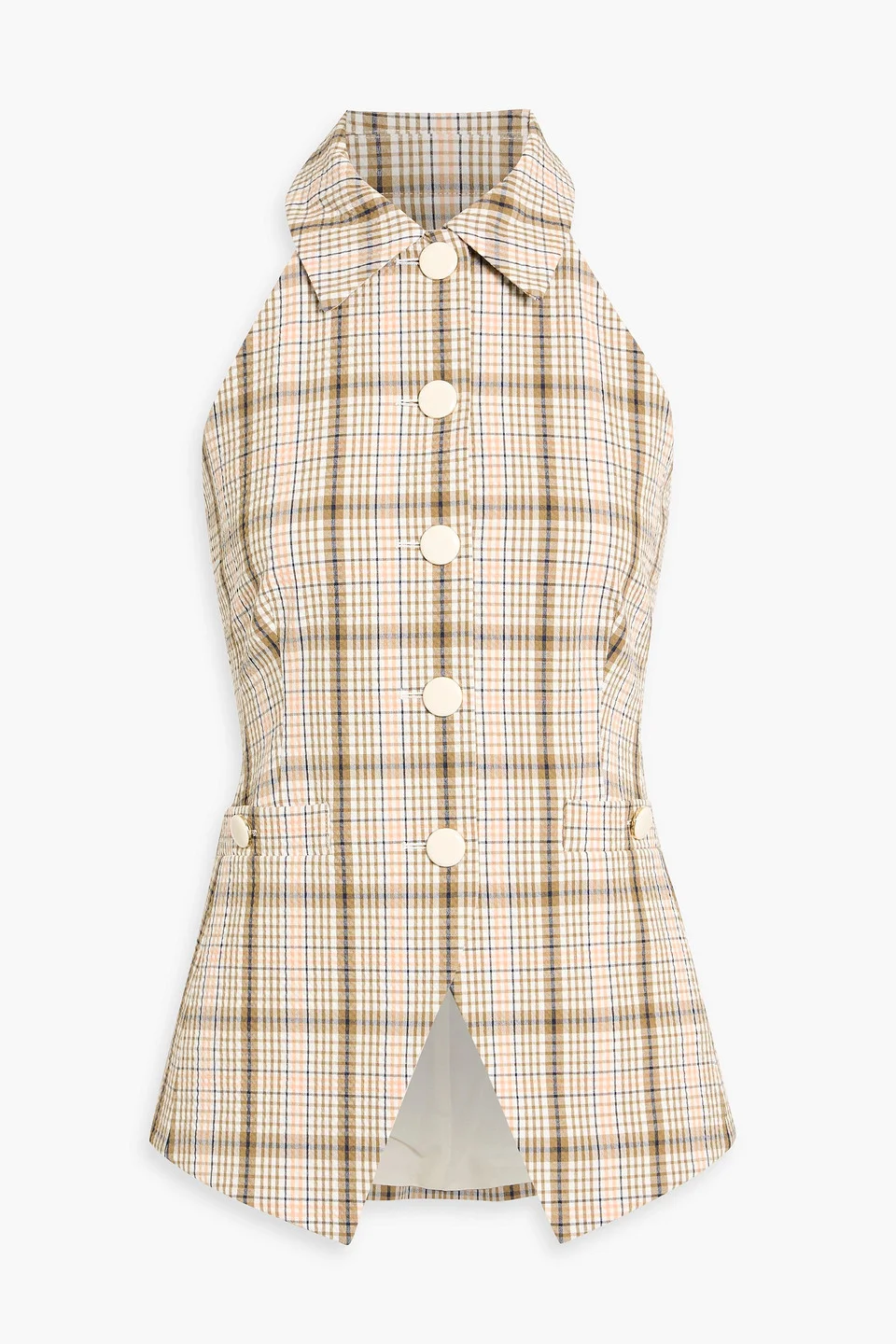 Vest checked cotton-blend seersucker front welt pockets button fastenings through front fully lined mid-weight, slightly stretchy fabric dry clean 98% Cotton 2% Elastane Product Code 46376663163079334