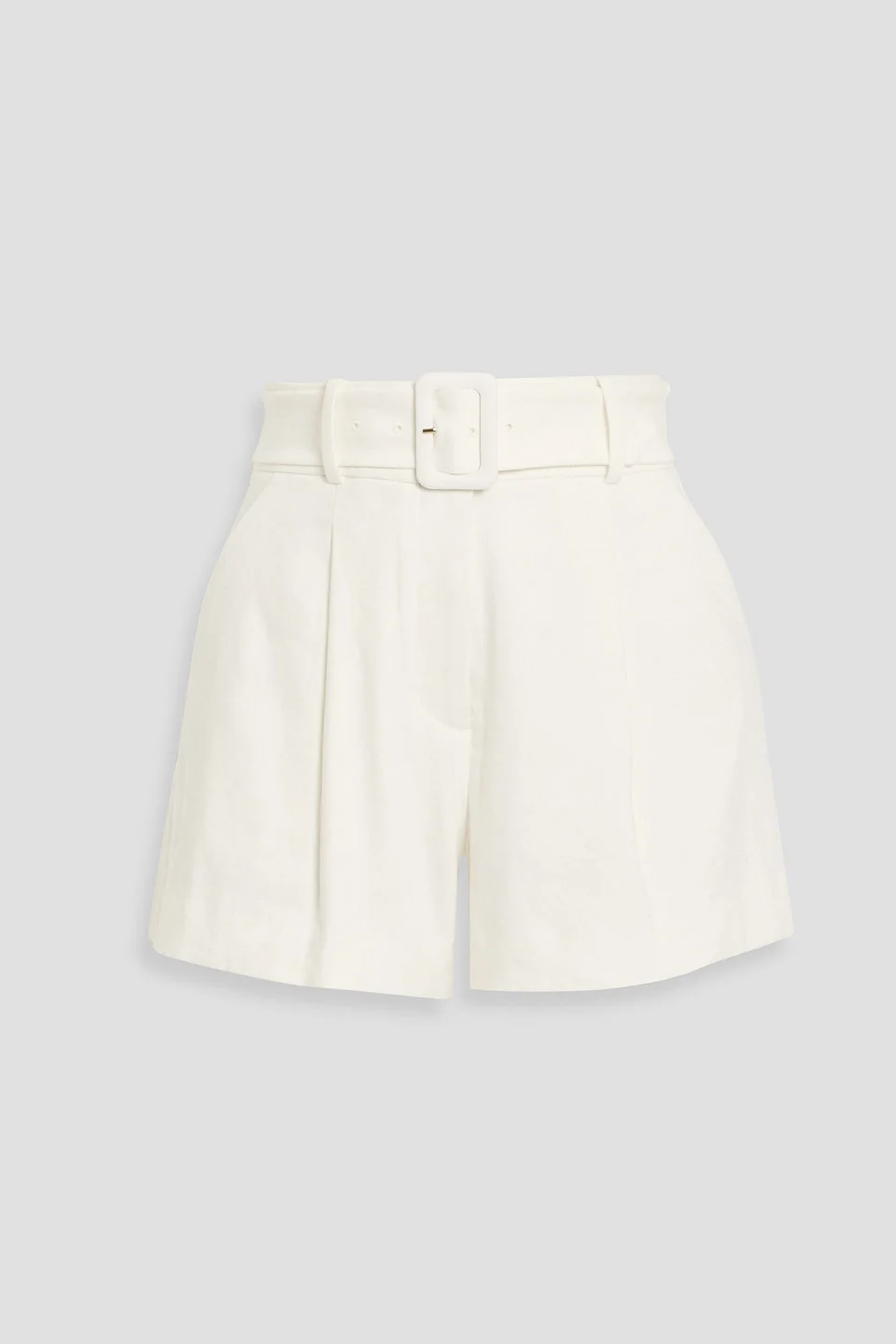 Shorts linen-blend twill pleated belt loops high-rise cut detachable belt front slant pockets back welt pockets concealed hook, button and zip fastening at front fully lined mid-weight, non-stretchy fabric dry clean imported 55% Linen 44% Viscose 1% Elastane Product Code 46376663163065128