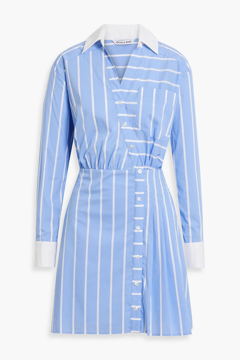 Shirt dress striped poplin cotton-blend wrap-effect pleated buttoned cuffs breast pocket button fastenings through front concealed hook and zip fastening at front mid-weight, slightly stretchy fabric dry clean imported 84% Cotton 12% Nylon 4% Elastane Product Code 46376663162910564