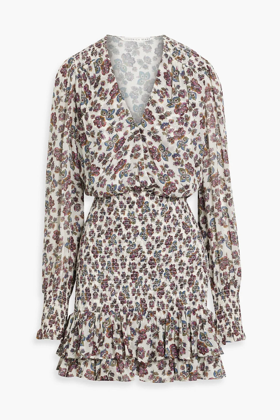 Dress floral-print crepe de chine shirred tiered hem slips on non-stretchy fabric mid-weight fabric dry clean imported 100% Viscose Product Code 1647597338962327