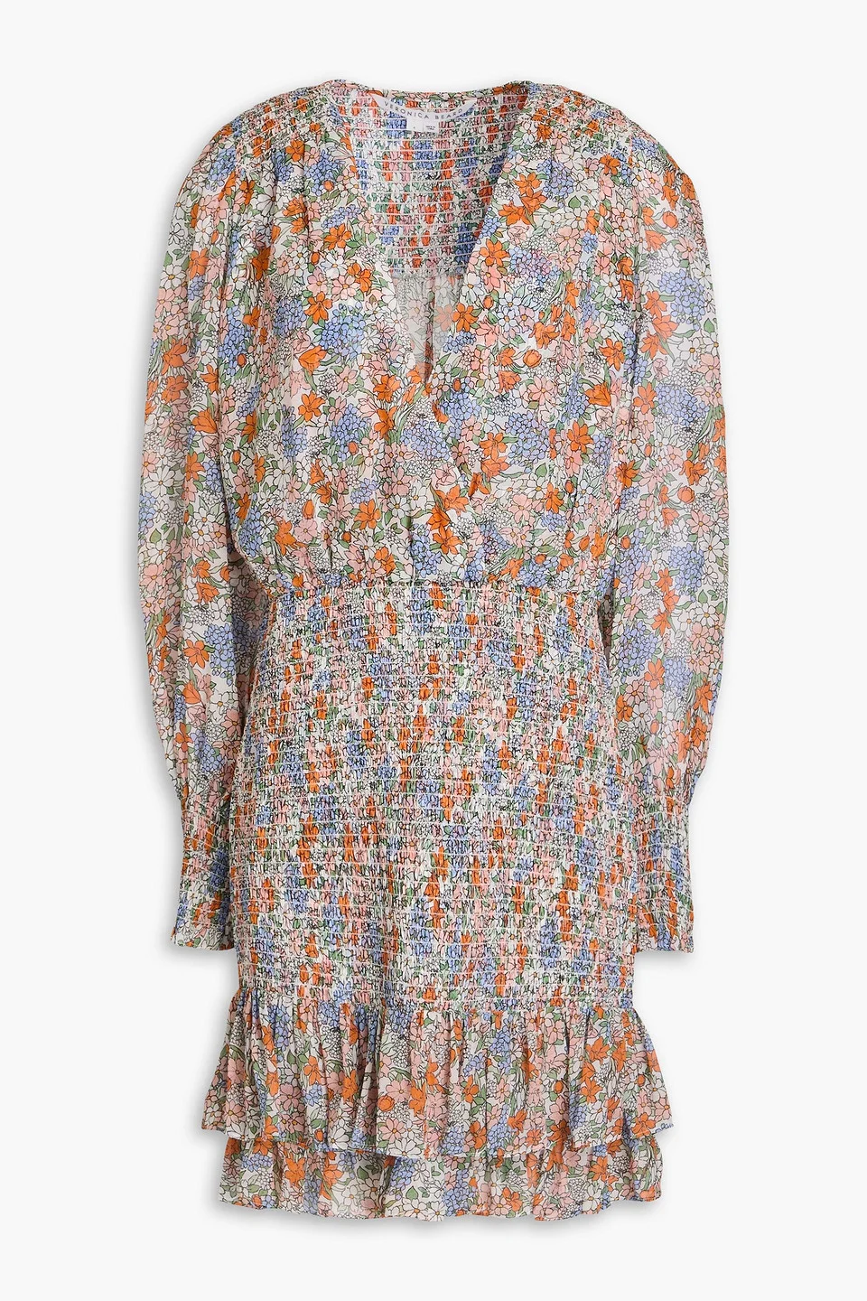 Dress floral-print silk-chiffon shirred ruffled hem slips on mid-weight, slightly stretchy fabric dry clean imported Step out in style with Veronica Beard's ‘Saera’ mini dress, a delightful blend of fun and sophistication. The silk-chiffon fabric features a vibrant floral print, while the shirred design and ruffled hem add a playful touch. Ideal for brunch dates or summer gatherings, this dress is sure to impress. 100% Silk Product Code 1647597345337572