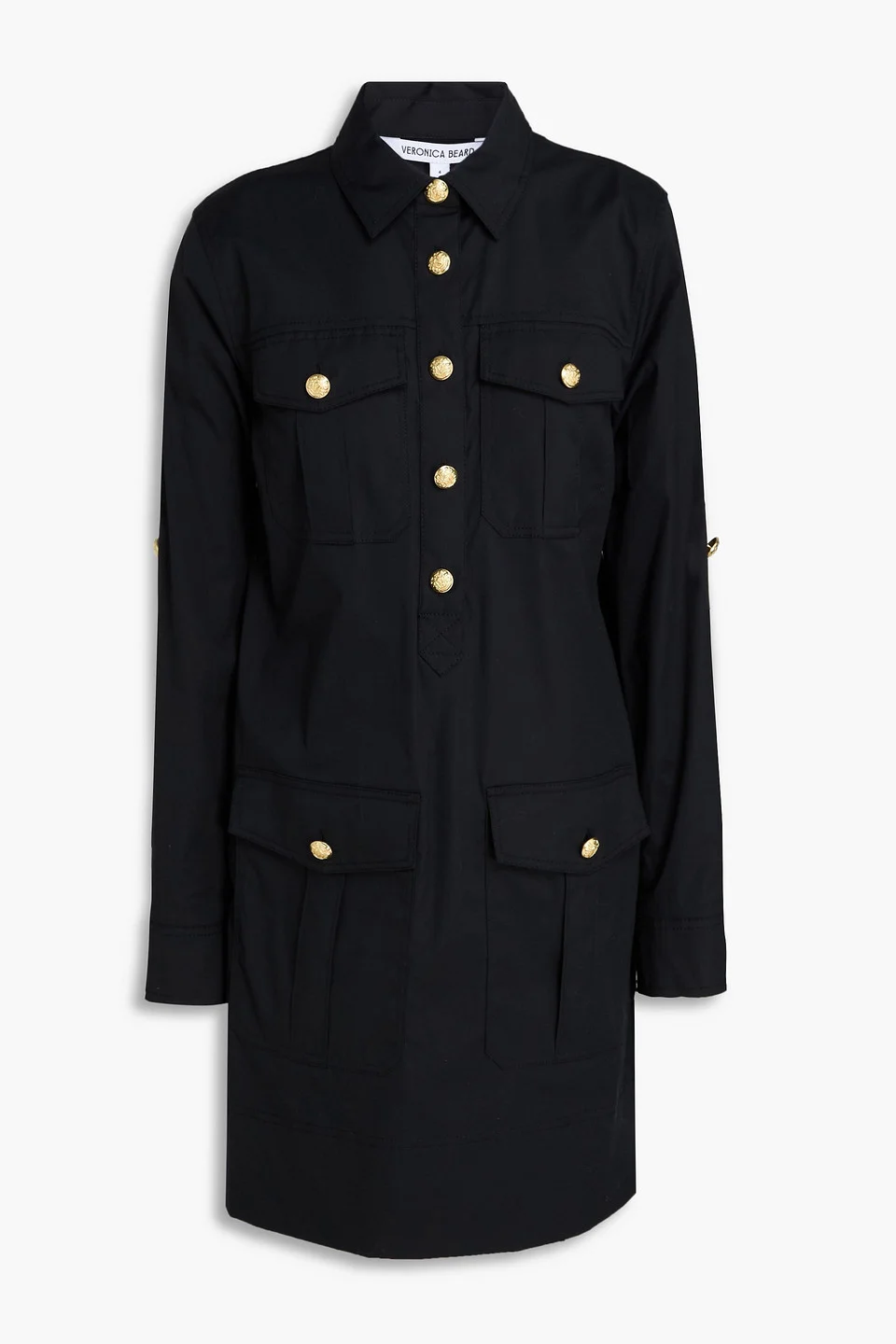 Shirt dress cotton-blend buttoned sleeve tabs pleated back front flap pockets button fastenings along front mid-weight, slightly stretchy fabric dry clean imported 97% Cotton 3% Elastane Product Code 46376663163051678