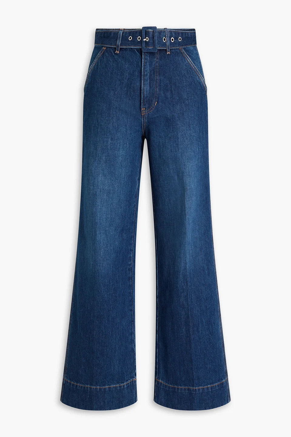 Wide-leg jeans denim detachable belt high-rise cut two side slant pockets two back patch pockets concealed hook and zip fastening at front mid-weight, non-stretchy fabric machine wash imported 100% Cotton Product Code 46376663162886797