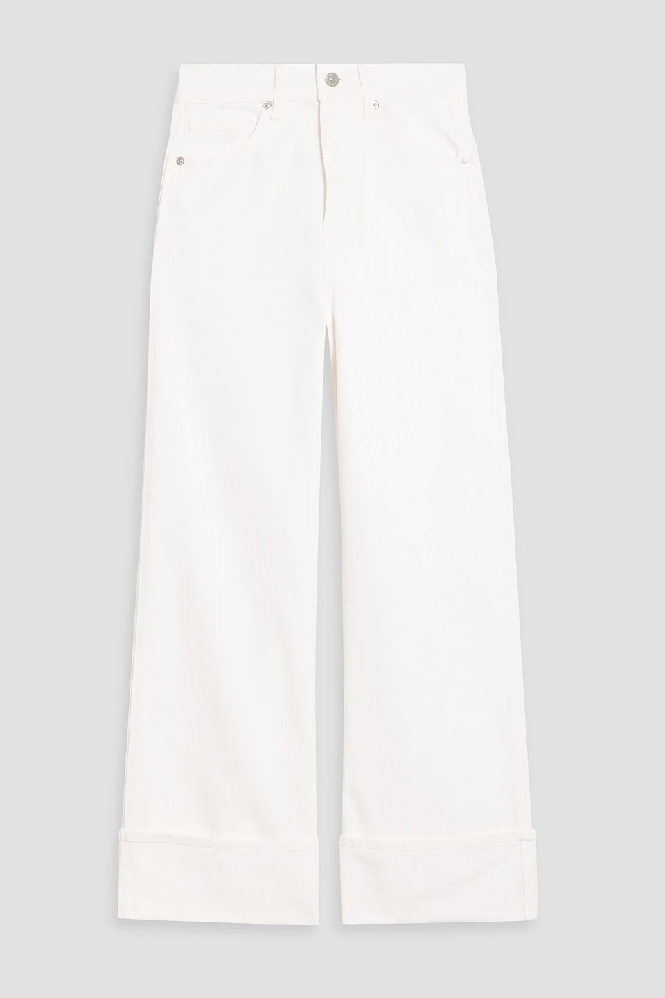 Wide-leg jeans denim cropped belt loops high-rise cut five pockets button and concealed zip fastening at front folded cuffs mid-weight, non-stretchy fabric machine wash or dry clean 100% Cotton Product Code 46376663163069895