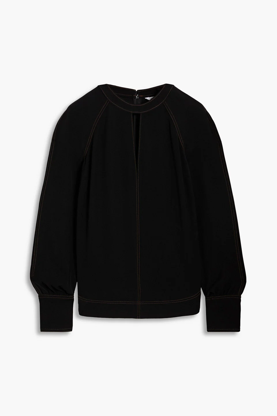 Blouse cady cutout topstitching buttoned cuffs concealed hook and zip fastening at back mid-weight, non-stretchy fabric dry clean imported 65% Polyester 35% Recycled polyester Product Code 46376663162975038
