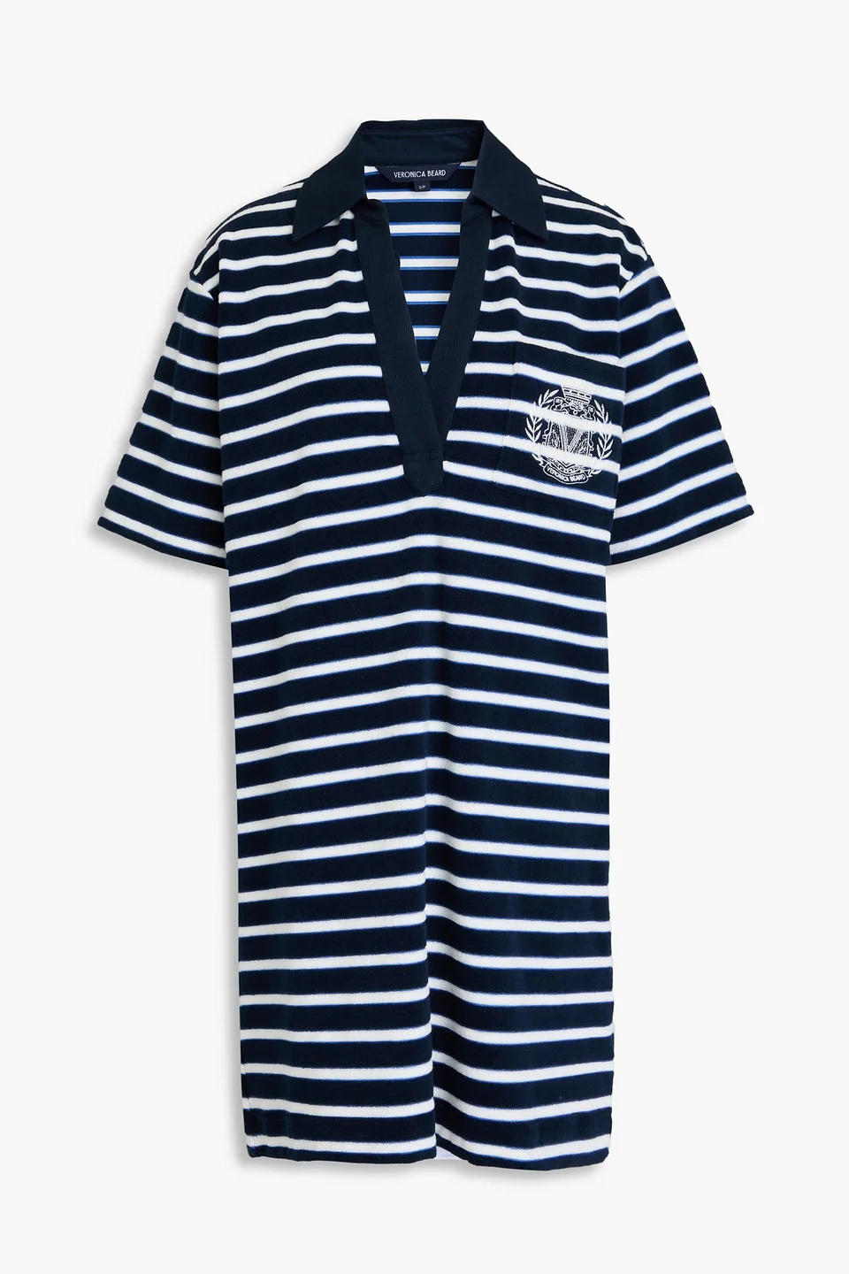 Dress striped terry cotton-blend knitted trims embroidered logo breast pocket slips on mid-weight, stretchy fabric machine wash or dry clean imported 78% Cotton 20% Polyester 2% Elastane Product Code 46376663162887005