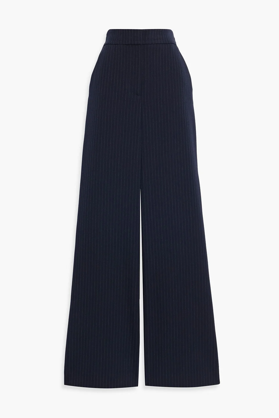 Wide-leg pants pinstriped twill front slant pockets back welt pockets high-rise cut concealed hook, button and zip fastening at front mid-weight, slightly stretchy fabric dry clean 63% Polyester 32% Viscose 5% Elastane Product Code 46376663163037409