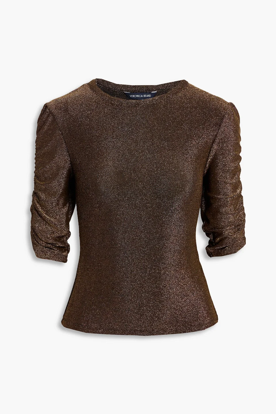 Top metallic stretch-jersey ruched sleeves slips on mid-weight, stretchy fabric dry clean imported 77% Polyamide 21% Metal 2% Elastane Product Code 46376663162972982