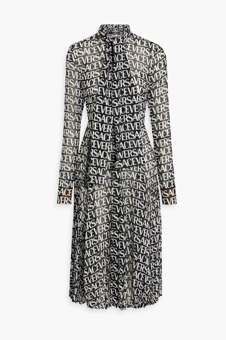 Dress logo-print silk-chiffon pleated neckties buttoned cuffs concealed button fastenings through front lightweight, non-stretchy fabric dry clean made in italy 100% Silk Product Code 1647597340103190