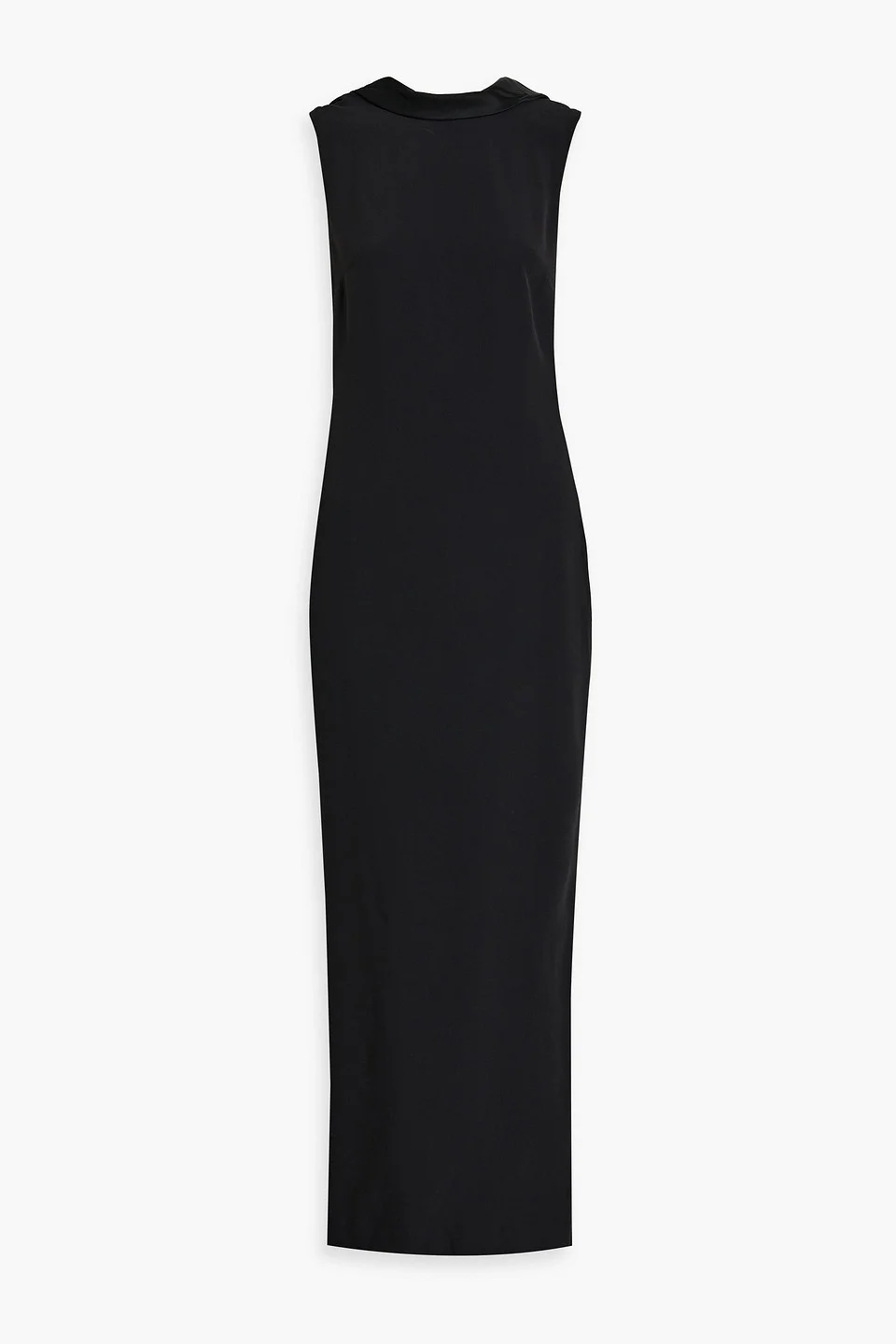 Invest in this elegant black dress—it’s one to wear over and again gown crepe open back draped back split concealed hook and zip fastening at side fully lined mid-weight, non-stretchy fabric dry clean made in italy 76% Acetate 24% Viscose Product Code 1647597339850122