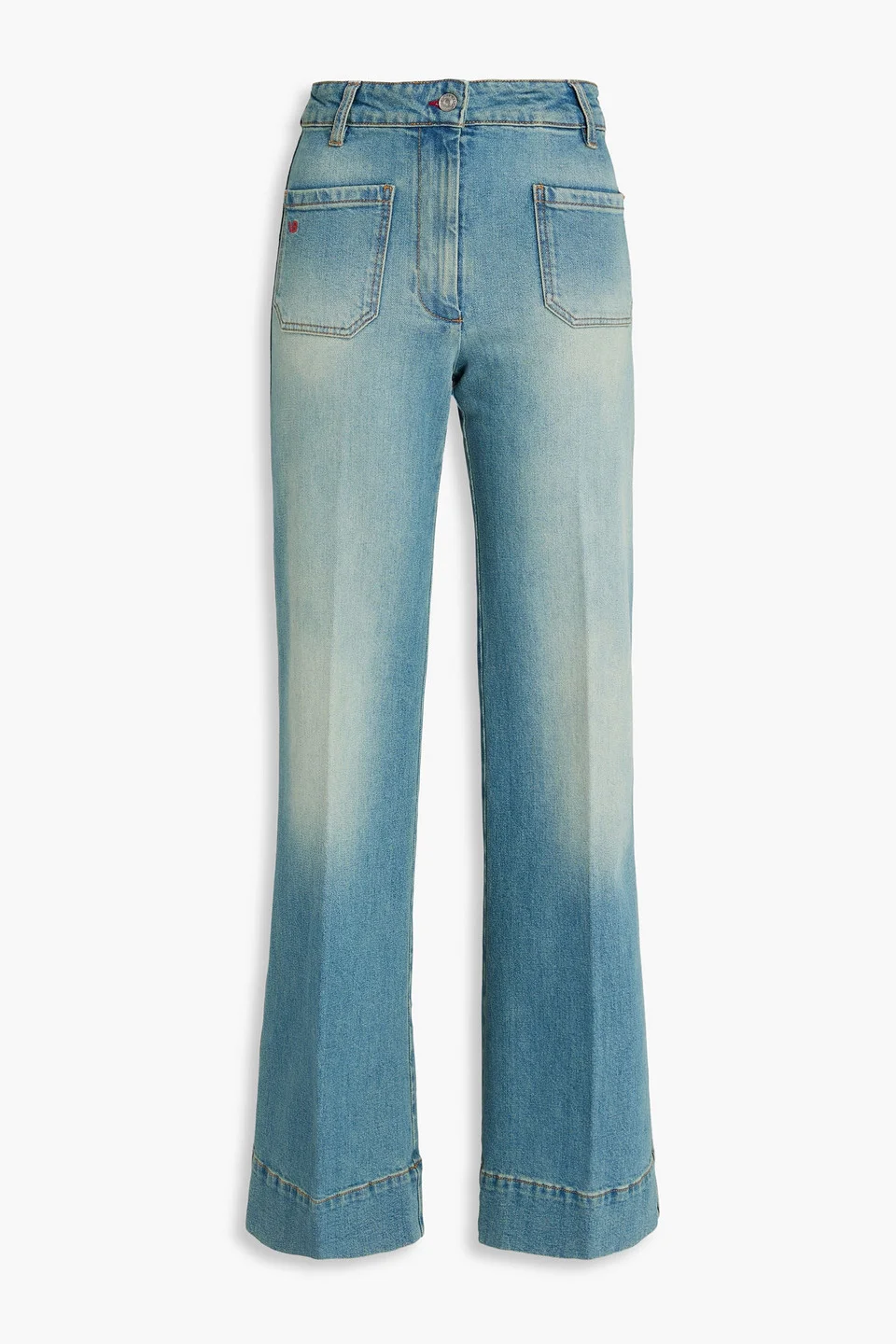 Flared jeans denim embroidered logo pressed creases belt loops high-rise cut front patch pockets button and concealed zip fastening at front mid-weight, slightly stretchy fabric machine wash or dry clean made in italy What’s not to love about the Victoria Beckham ‘Alina’ jeans? It has a sculpted high-rise and pressed creases that flatter the silhouette in smart, modern denim. Wear with loafers or heels for busy city days and off-duty moments. 98% Cotton 2% Elastane Product Code 46376663162991969
