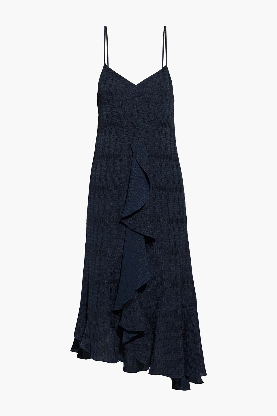 Asymmetric ruffled satin-cloqué midi dress