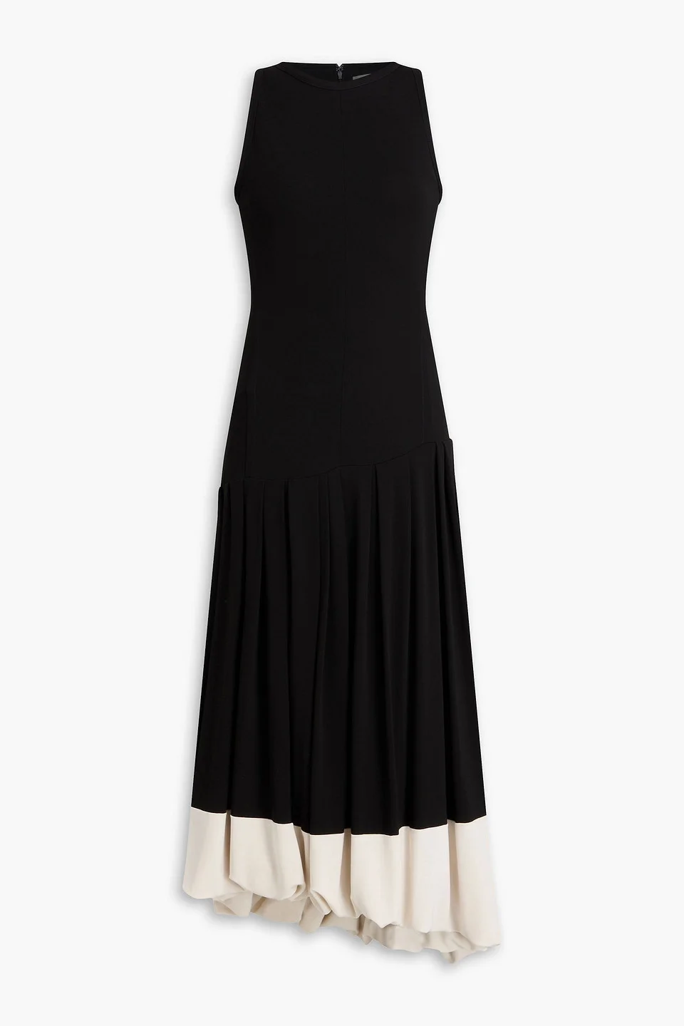 Asymmetric two-tone jersey midi dress