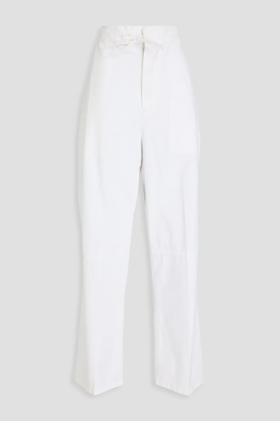 Straight-leg pants cotton pressed creases back flap pocket side welt pockets drawstring waist high-rise cut concealed button fastenings along front mid-weight, non-stretchy fabric matching top also available machine wash made in italy 100% Cotton Product Code 46376663162866537