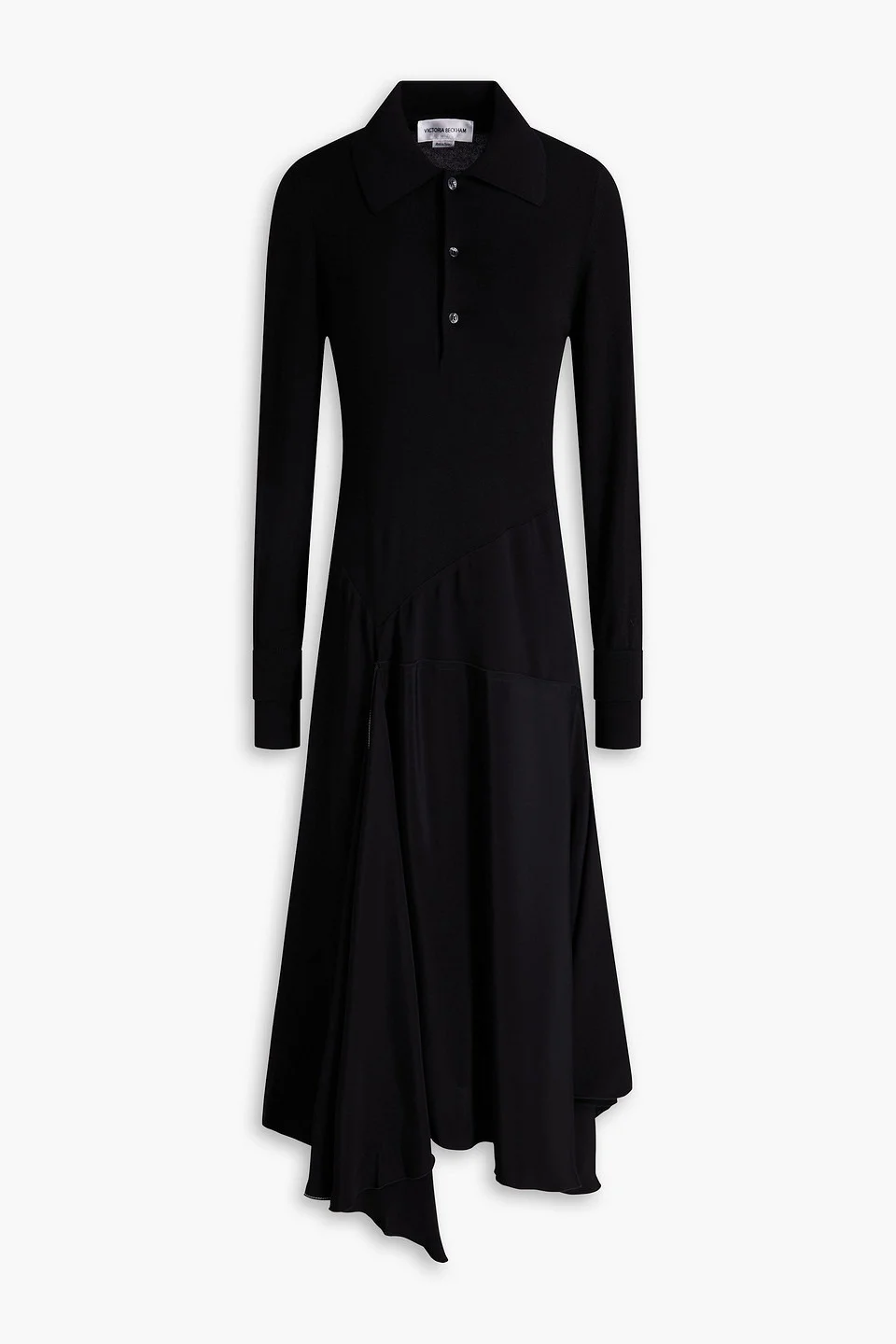 Dress crepe wool paneled side split handkerchief hem button fastenings along front zip fastening along side mid-weight, non-stretchy fabric mid-weight knit dry clean imported 100% Wool 0% Viscose Product Code 46376663162926592