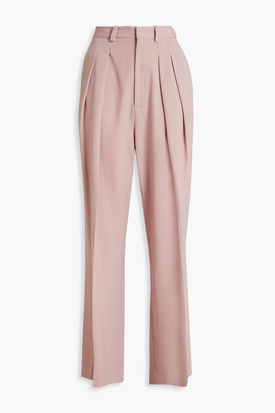 Wide-leg pants crepe pleated two front slant pockets two back welt pockets belt loops high-rise cut concealed hook, button and zip fastening at front mid-weight, non-stretchy fabric dry clean imported Step into sophistication with Victoria Beckham’s wide-leg pants. Made from crepe with virgin wool in the mix, these high-rise trousers feature elegant pleats and practical pockets. Wear them with a tailored blouse for a polished work look. 55% Polyester 45% Virgin Wool Product Code 1647597359162577