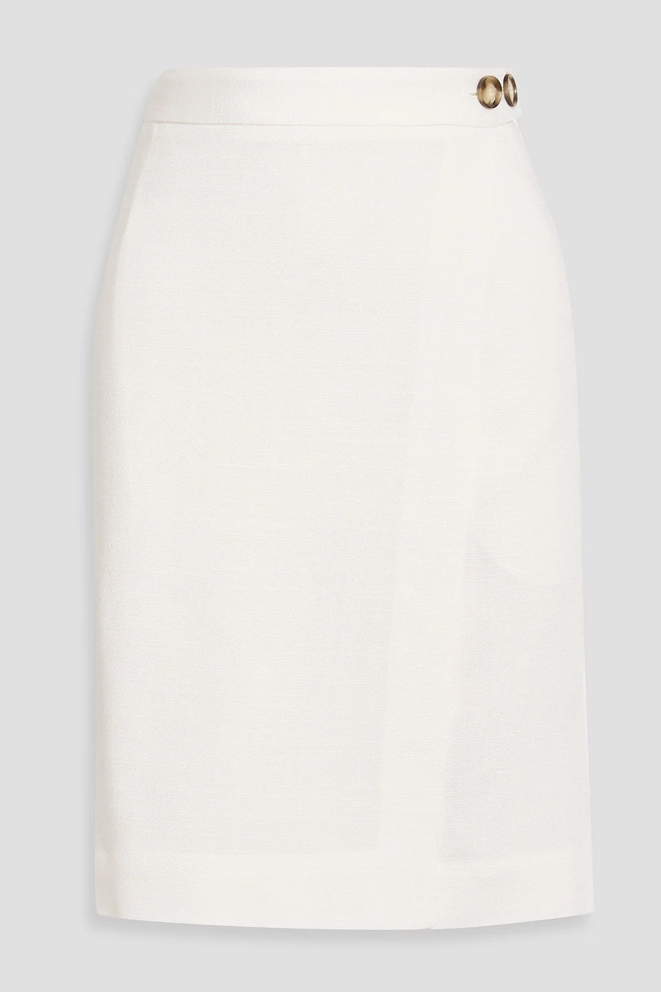 Wrap skirt crepe side slit pockets back welt pockets button fastening at side mid-weight, non-stretchy fabric dry clean made in england 99% Viscose 1% Elastane Product Code 46376663163104209