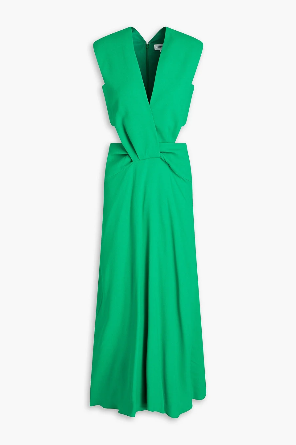 Dress crepe cutout twisted concealed hook and zip fastening at back partially lined mid-weight, slightly stretchy fabric dry clean imported This stunning Victoria Beckham dress is made from soft crepe with a chic cutout and twisted design that adds a modern twist. Wear it with strappy heels for a wedding or dinner party. 100% Viscose Product Code 1647597327449883