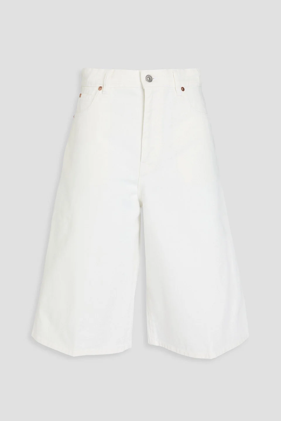 Shorts denim belt loops high-rise cut five pockets button and concealed zip fastening at front mid-weight, non-stretchy fabric machine wash or dry clean made in italy 100% Cotton Product Code 46376663162866543