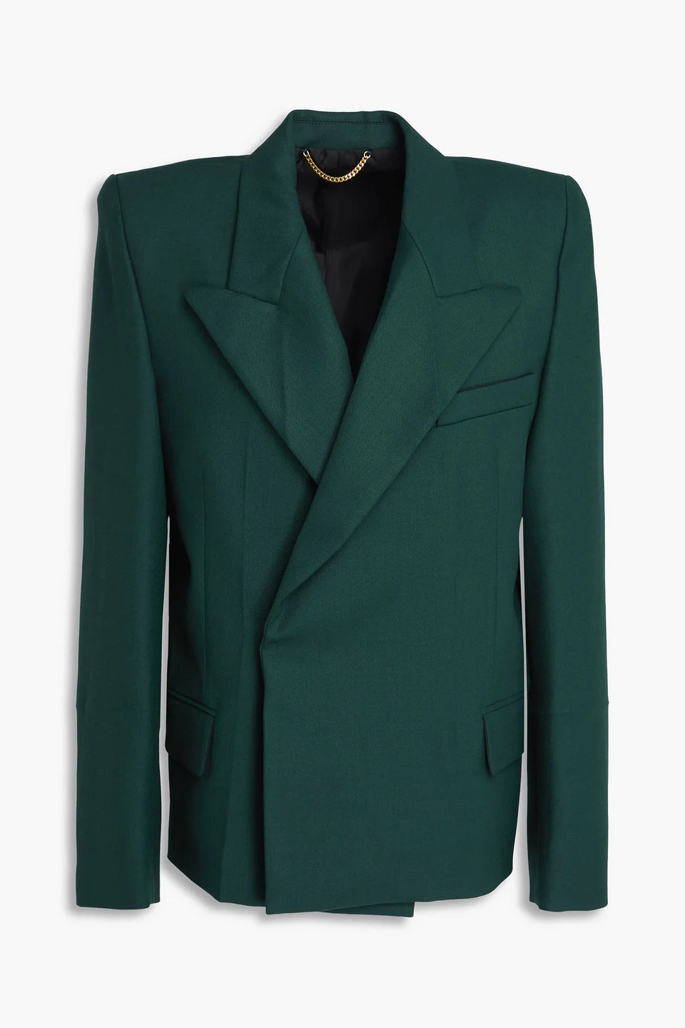 Blazer twill shoulder pads breast pocket front flap pocket button fastening at double-breasted front fully lined mid-weight, non-stretchy fabric dry clean imported 53% Polyester 43% Virgin Wool 4% Elastane Product Code 46376663162990713